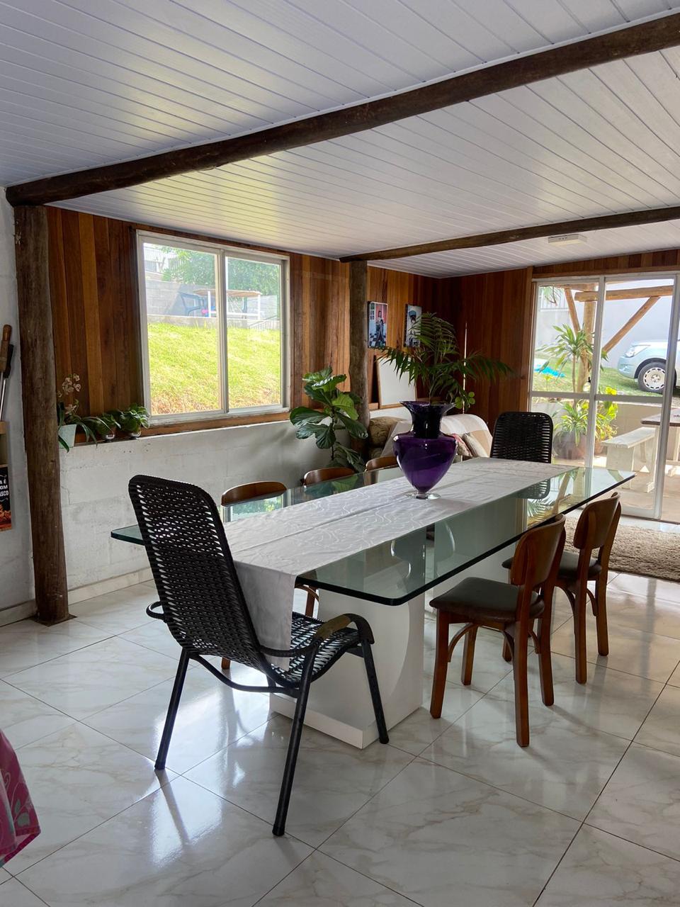 Casa junto a la naturaleza con un ambiente cálido y acogedor, a 300 metros del centro comercial de Pedras y a 500 metros de Vinicula Ametista. Casa con baño social, dormitorio con aire acondicionado y cama queen, y un dormitorio secundario con ventilador de techo, cama queen y TV. Amplia sala de estar con chimenea, sofá cama, TV y cocina. En el balcón hay una sala de juegos y un lugar con parrilla. En el exterior hay un gran espacio con piscina, baño, terraza de madera y perrera cubierta. Señal de Wifi.