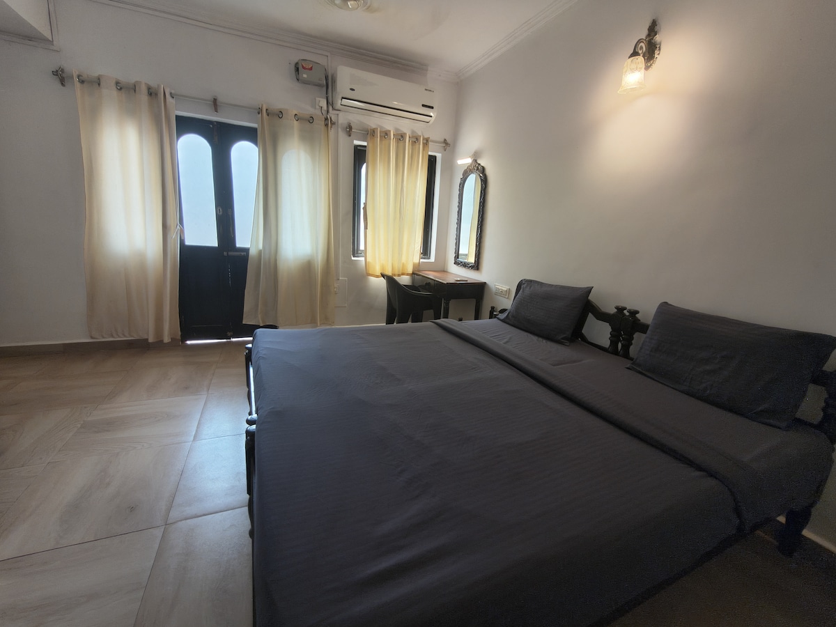 Habitación de lujo ultraespaciosa con piscina en el centro de Calangute ¡Disfruta de Goa con estilo! Esta cálida, espaciosa y elegante habitación de lujo totalmente amueblada está ubicada en el corazón de Calangute, con una refrescante piscina. Disfruta de un dormitorio grande con baño privado adjunto y amplio espacio para relajarte. La famosa playa de Calangute está a pocos pasos y ofrece unas vistas fantásticas. Playa de Calangute: 1,4 km Playa de Baga: 3,3 km Playa de Anjuna: 7,7 km