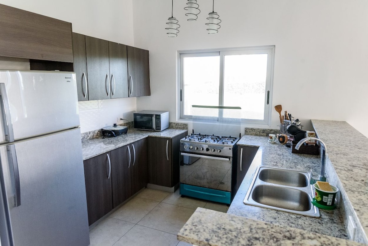 Escápate a disfrutar en familia o con amigos de la comodidad de este hermoso y acogedor apartamento equipado con todo lo que necesario para tus vacaciones. Cuenta con 1 recámara, terraza preciosa, 1.5 baño, sofá cama, comedor, una excelente cocina, aire acondicionados, WIFI y TV con cable incluido. (Máximo 4 personas). Magnífica vista a la piscina más grande de centro America. Cuenta con playa a solo 5 minutos, cancha de fútbol, tenis, baloncesto, parque infantil y toboganes de agua.