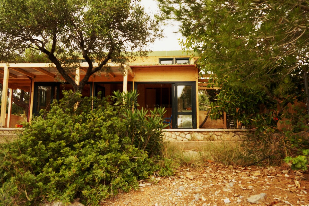 Wooden Beach Cabin es una cabaña prefabricada de 50 metros cuadrados rodeada por un terreno de 800 metros cuadrados de olivos, laureles silvestres y otras plantas, con vistas a un pequeño golfo natural. La cabaña ofrece amplios interiores que permiten al usuario conectar con la naturaleza circundante. La cabaña adopta una forma elegante y funcional con grandes acristalamientos que enmarcan las vistas de los alrededores. El lugar ofrece paz y serenidad, sobre todo por la estética «menos es más» con la playa a solo unos pasos de ella.