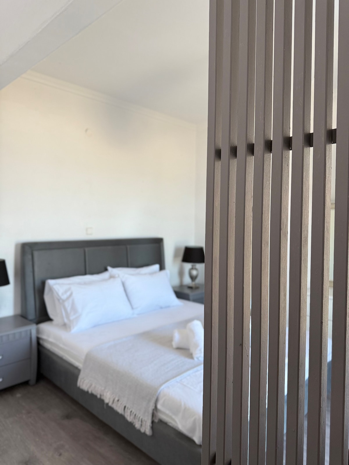 Loft completamente nuevo (78 m²) espacioso con un hermoso jardín. Muebles y lámparas hechos a mano de nuestro propio diseño. Le espera una cama doble muy cómoda con colchón de espuma viscoelástica. El loft está situado en el centro de la ciudad y a menos de 10 minutos del aeropuerto y de muchos centros comerciales. En 3 minutos a pie se encuentra en la plaza de la ciudad y en 10 minutos en la presa de Thermi. Llegarás a Calcídica en 30 minutos. Dispone de internet de 200 mbs.