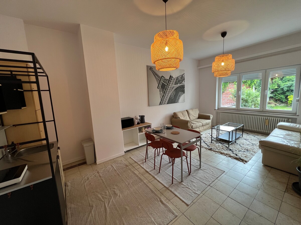 ¿Quiere disfrutar de Bruselas, pero también de un nido tranquilo y agradable? ¡Bienvenido a nuestra casa! Cerca de las instituciones europeas, en conexión directa con el centro de la ciudad. A 2 minutos del tranvía, a 10 minutos del metro, se encuentra un apartamento independiente, en la planta baja de nuestra casa familiar. Tranquilidad en la ciudad, jardín y biblioteca: ¡toda una forma de vida! Te invito a que disfrutes del hecho de no estar en casa: es diferente, y eso es lo que hace que un viaje tenga encanto ;-)