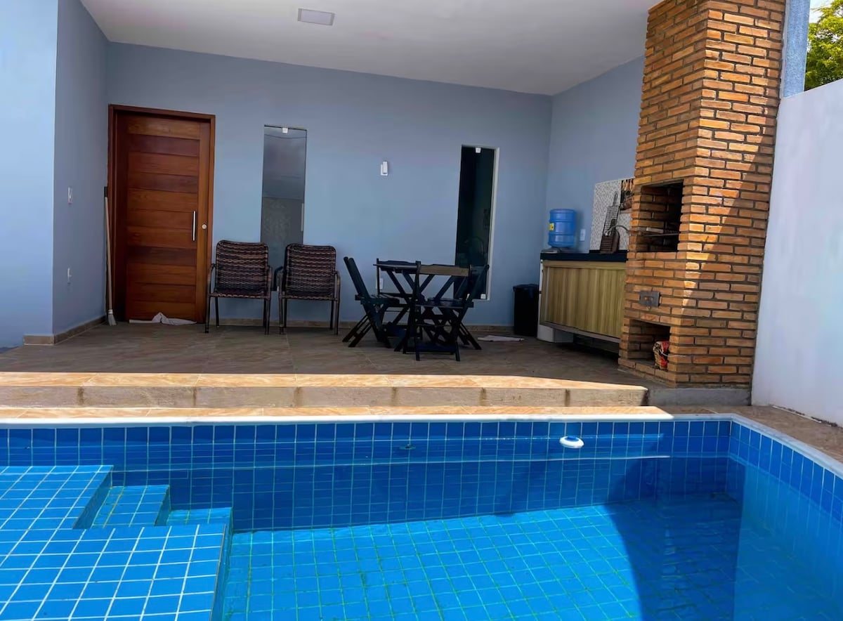 Relájese en este tranquilo alojamiento, ubicado en el condominio Coral do Sonho Verde con acceso privado a la parte más hermosa de Paradise Praia do Sonho Verde. La casa tiene 3 suites con aire acondicionado y ventilador, una cocina americana, sala de concepto abierto, zona de barbacoa, piscina, ducha y Wi-Fi. Ofrecemos sillas de playa, sombrillas y refrigerador. El condominio tiene seguridad las 24 horas, cancha de fútbol, cancha de arena, sala de fiestas, parque infantil y geek. No aceptamos mascotas.