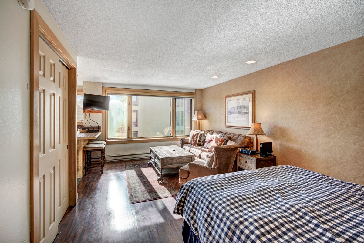 ¡Acogedor estudio de montaña junto a Main Street y aguas termales!