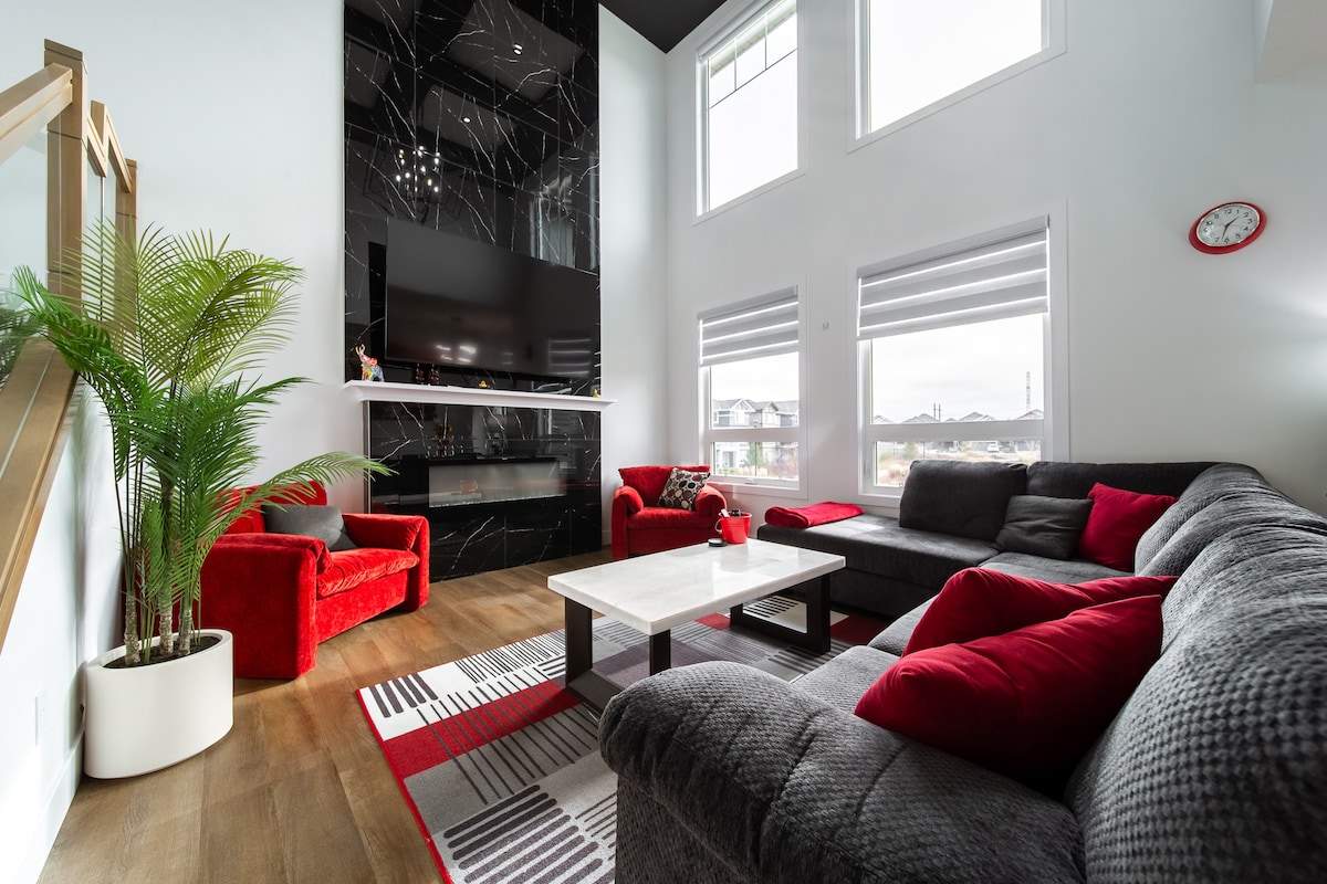 ¡Bienvenido a nuestro lujoso refugio de 5 dormitorios y 3,5 baños en un barrio de lujo! Disfruta de una sala de cine en la casa, una mesa de billar convertible y un sereno jacuzzi. El dormitorio principal cuenta con un televisor de 75 pulgadas, iluminación RGB y un baño tipo spa. Entra en el patio con una mesa de fuego, jacuzzi y amplios asientos. La vibrante iluminación RGB del patio trasero crea el ambiente. A poca distancia a pie de un campo de golf y a 5 minutos en coche del centro comercial West Edmonton Mall. ¡Experimenta el lujo y la comodidad en este lugar exclusivo!