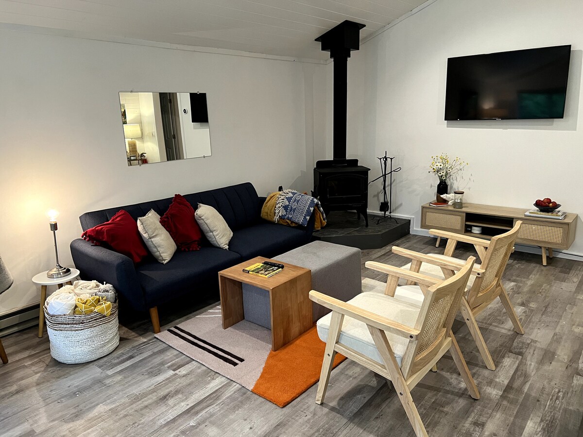 Esta impresionante casa ha sido renovada y ofrece total privacidad y tranquilidad; está situada en un terreno de 5 acres al final de un camino tranquilo. La Mountain Terrace cuenta con una estufa de leña en el interior, una terraza con hermosas vistas, un fogón, 3 dormitorios y 2 baños, y un techo doble alto en la sala de estar principal. Hay lavadora/secadora, lavavajillas, cabina de artista y estudio privado de yoga. A 15 minutos en auto de Livingston Manor para excelentes restaurantes, tiendas y actividades. Se admiten mascotas.