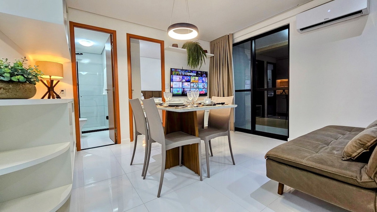 Dormitorio y sala de estar renovados, acogedores y bien equipados, a 100 metros de la playa y a unos 500 metros del Parque Shopping. Ideal para aquellos que quieren comodidad y practicidad en Maceió. En el departamento: • Aire acondicionado • Wi-Fi • TV inteligente Estás cerca del mar para caminar y disfrutar de la costa y también a pocos minutos a pie de tiendas, supermercados y farmacias. Si la idea es descansar, trabajar de forma remota o disfrutar de la ciudad con más libertad, este departamento es para ti.