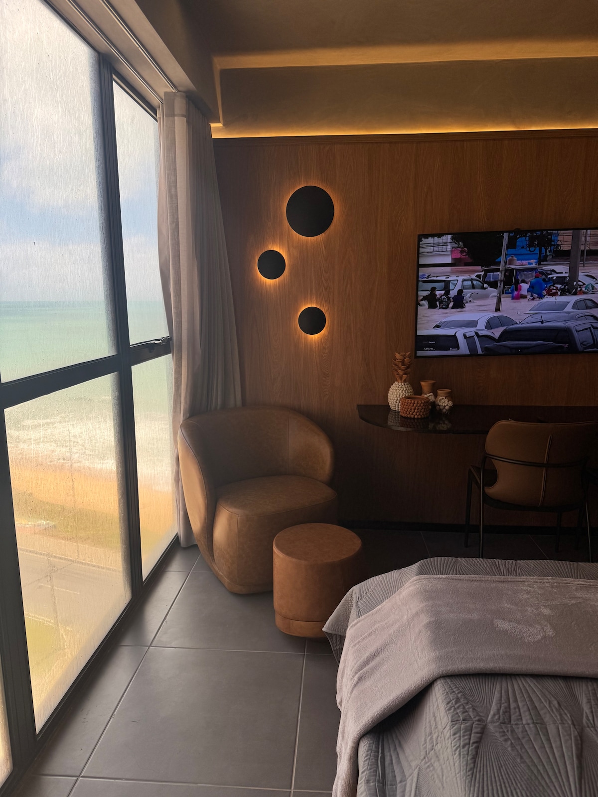 Loft en Maceió perfecto para relajarse: ambiente moderno y acogedor con todo lo que necesitas para sentirte en casa. Nuestro loft fue diseñado para ofrecer una experiencia completa, combinando comodidad, funcionalidad y una vista increíble. Totalmente equipado, el espacio cuenta con una cocina completa con estufa, horno, nevera, microondas, licuadora, sandwichera y cafetera, además de secador de pelo y plancha, ideal para quienes desean sentirse como en casa incluso cuando viajan.