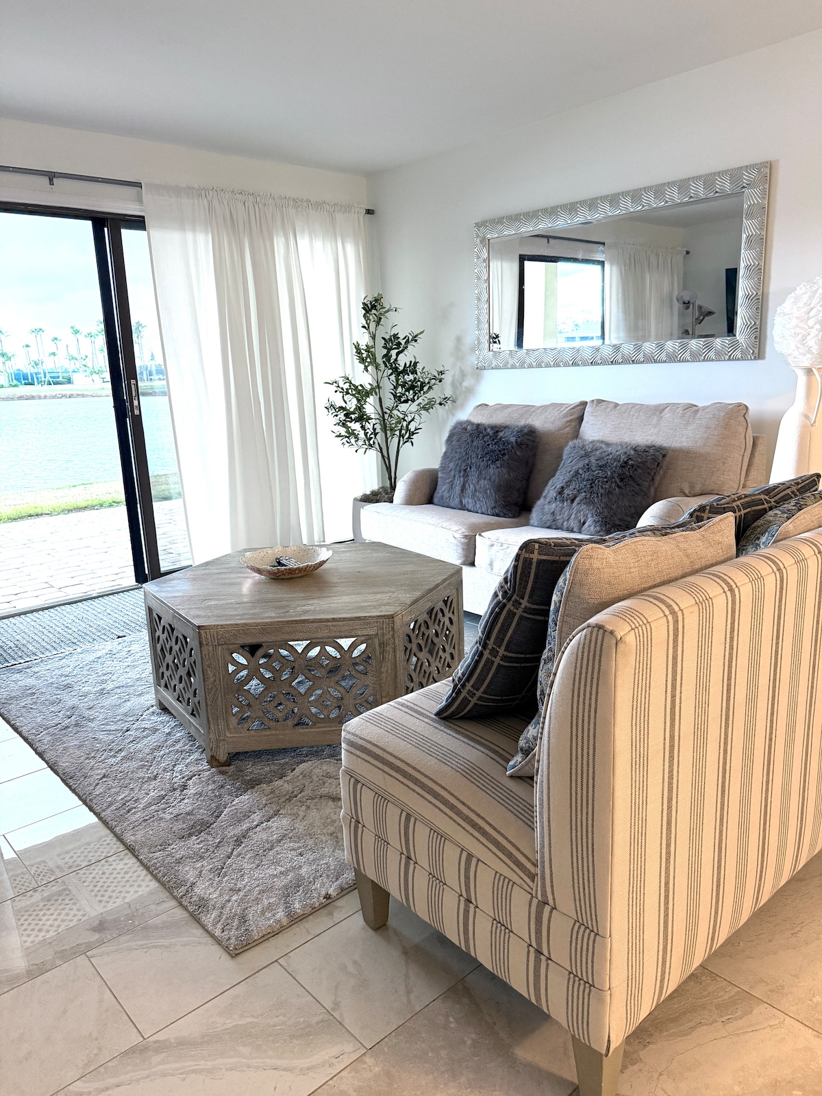 Relájese y descanse en este espacio tranquilo y elegante, con vistas al lago y la ventaja de un exclusivo salón moderno de estilo marroquí. Nuestro condominio de 2 dormitorios y 2 baños está rodeado de naturaleza, lo que le ayuda a relajarse y disfrutar. El salón marroquí sirve como espacio adicional para ver el partido o mover los cojines y las dos grandes áreas para sentarse se convierten en un maravilloso espacio para dormir de tamaño doble con capacidad para dos personas adicionales.