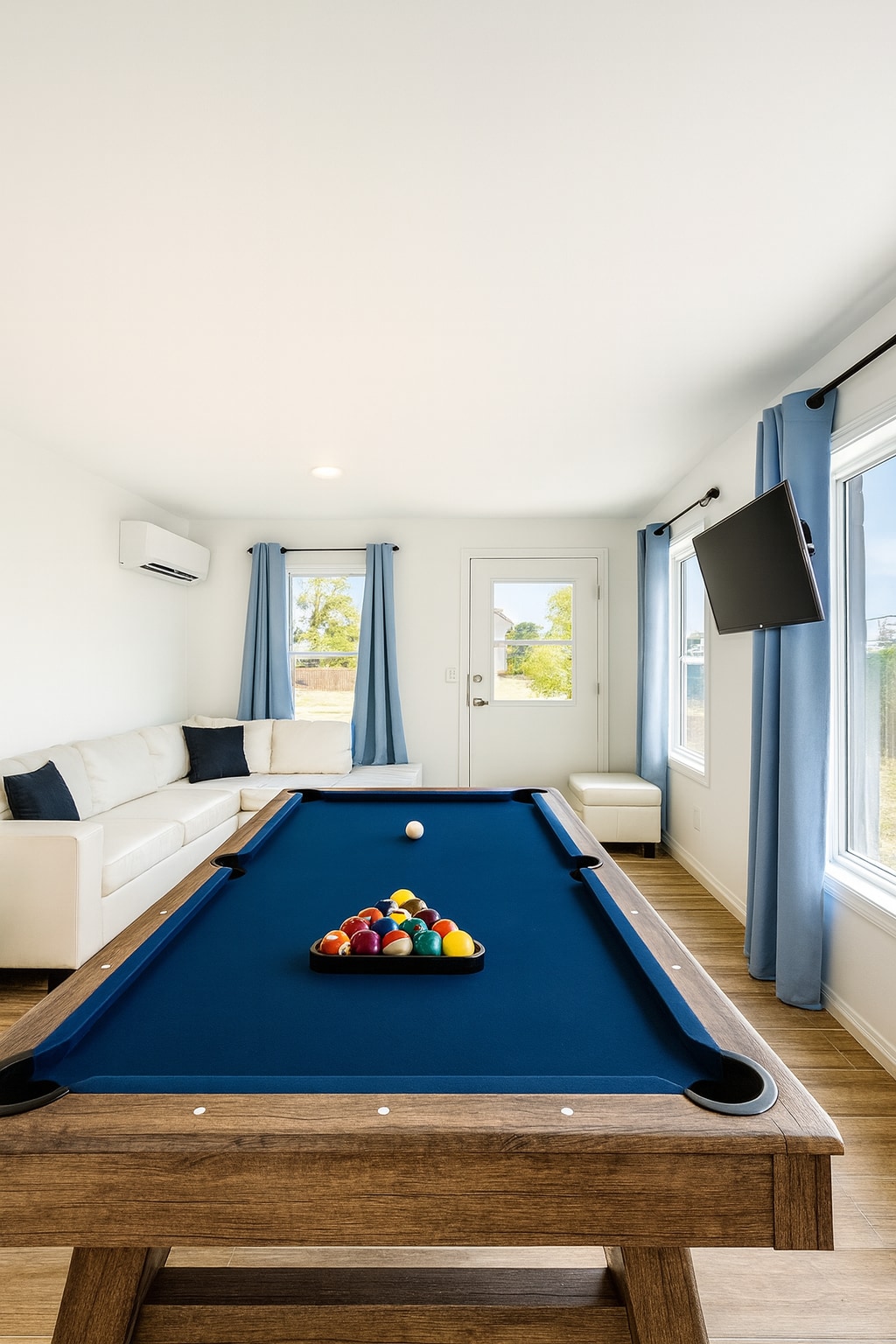 Muelle, kayaks, mesa de billar, baloncesto, hockey de aire.