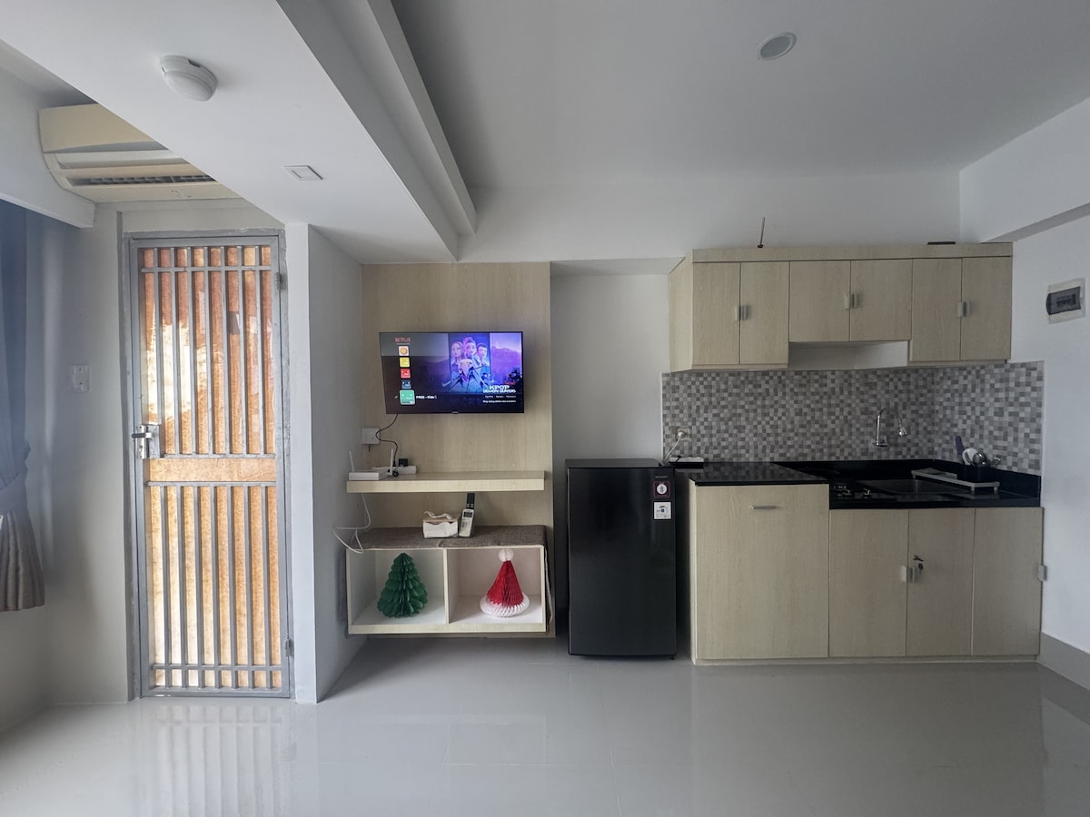 Apartamento superacogedor y limpio con 2 habitaciones, con un poco de ambiente costero y buenas vistas. Estratégicamente ubicado porque está junto a la cabina de peaje Pasteur, una de las carreteras principales de Bandung. Hay una cama tamaño queen, 1 cama plegable y 1 sofá cama (capacidad para 6 personas). Tenemos servicios completos como: TV inteligente, wifi ilimitado, aire acondicionado, calentador de agua, estufa eléctrica, microondas, agua de galón para beber, mini cocina, secador de pelo, mesa de planchar, toalla (4 toallas) y más.