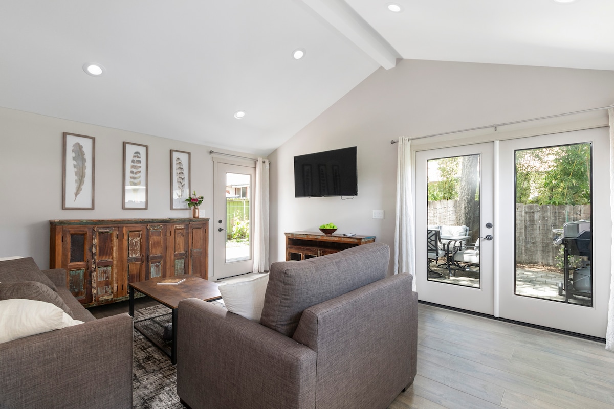 ¡Alójate en un bungalow privado adosado a una moderna casa de campo blanca a 0,6 millas del centro histórico de Paso Robles! Disfruta de la decoración rural urbana, cocina completa, cama tamaño king y una puerta de garaje de vidrio que se abre al patio privado y zona de barbacoa. El bungalow está cerca del centro de la ciudad, donde encontrarás increíbles bodegas, cervecerías artesanales locales, restaurantes elegantes, cafeterías, queserías, boutiques familiares, cine, galería de arte y mucho más. ¡Explora la costa central o reserva un tour de cata de vinos!