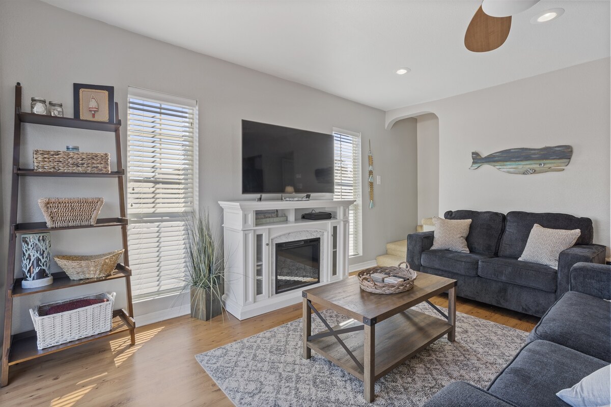 ¡Ven a la playa y trae a tu mascota contigo gratis! Tu alojamiento será la casa adosada superior de un dúplex de 2 pisos. Tienes un combo de sala de estar/comedor con puertas francesas al porche, parrilla y patio, 2 dormitorios, una cocina completa bien equipada y lavandería. Hay un hermoso parque en 2 lados con sendero para caminar, equipo de juego, canchas de tenis y baloncesto. A poca distancia de la playa, de restaurantes finos e informales y a 5 minutos en bicicleta del centro de la ciudad. El ferrocarril está detrás del parque.