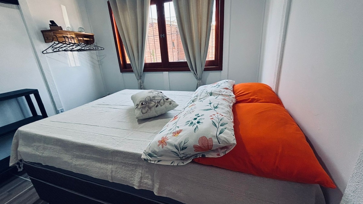 El ambiente es perfecto para aquellos que buscan comodidad y practicidad para relajarse y disfrutar. Ambiente integrado: cama doble, aire acondicionado frío, TV, 500 mg Wi-Fi, mesa de comedor; minicocina con placa de cocción de 2 quemadores, microondas, cafetera, nevera, tostadora, freidora de aire, hervidor eléctrico, sándwichera, utensilios domésticos y ropa de cama. Un sofá para que los niños duerman, asiento para bebés. Nota: No ofrecemos toallas de baño ni artículos de tocador. No aceptamos mascotas.