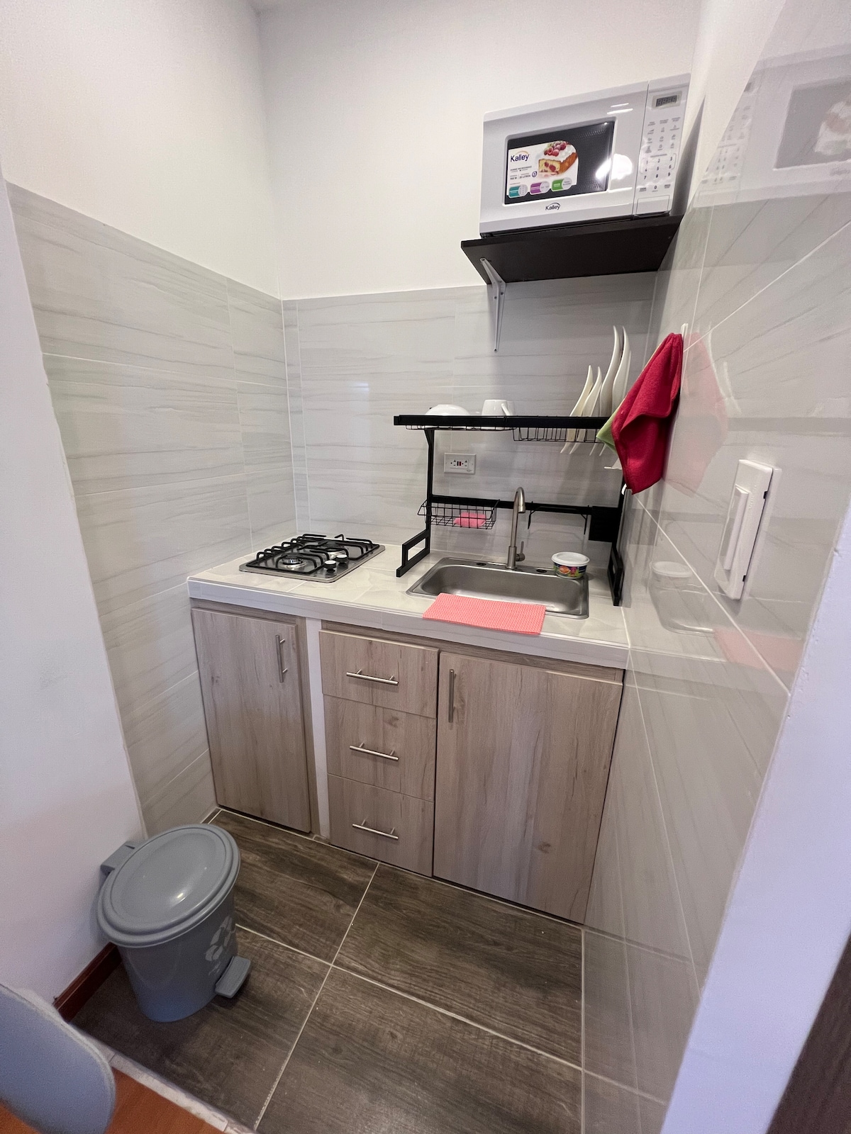 Aparta estudio amoblado con todo lo necesario para que disfrutes de una agradable experiencia, cuenta con servicios de Internet, Agua, luz, y gas Excelente ubicación, cerca a 5 hospitales , zona rosa de la Cuidad, 5 universidades, servicio de Portería. Servicio de lavandería, sala de cine, zona bbq , salón de eventos por un costo adicional, TV Android con Netflix. Encantados de recibirte en nuestro alojamiento.