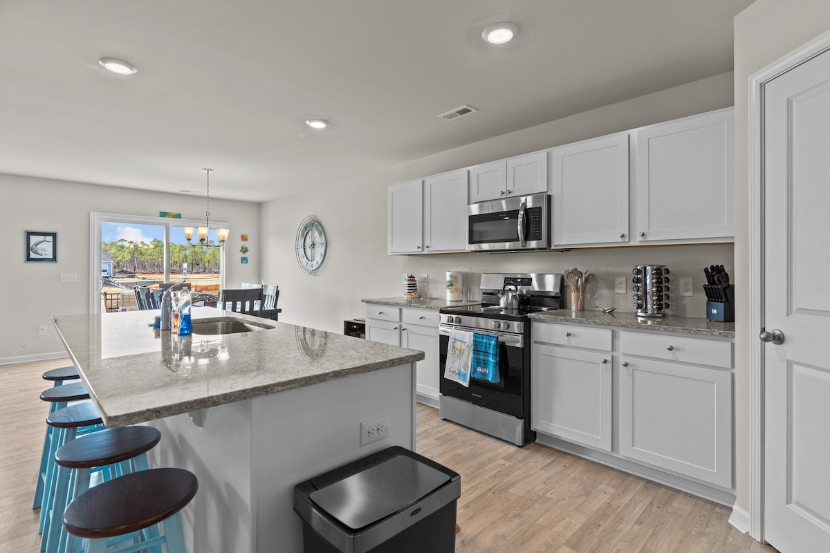 Precioso apartamento, espacio privado. Comedor y sala de estar abiertos y amplios. Cocina bien equipada: nevera, cocina/horno completo, microondas, tostadora, licuadora, cafeteras, ollas, sartenes, platos, utensilios. Productos para preparar el desayuno a mano. Sala multimedia con TV inteligente, asientos cómodos, estación de trabajo con ordenador. Dormitorio principal grande y espacioso con cama tamaño king o se puede cambiar por dos individuales. El baño se encuentra junto al dormitorio, ducha a ras de suelo, sin bañera. Playas, el centro de Wilmington, UNCW, todo a 15 minutos en coche.