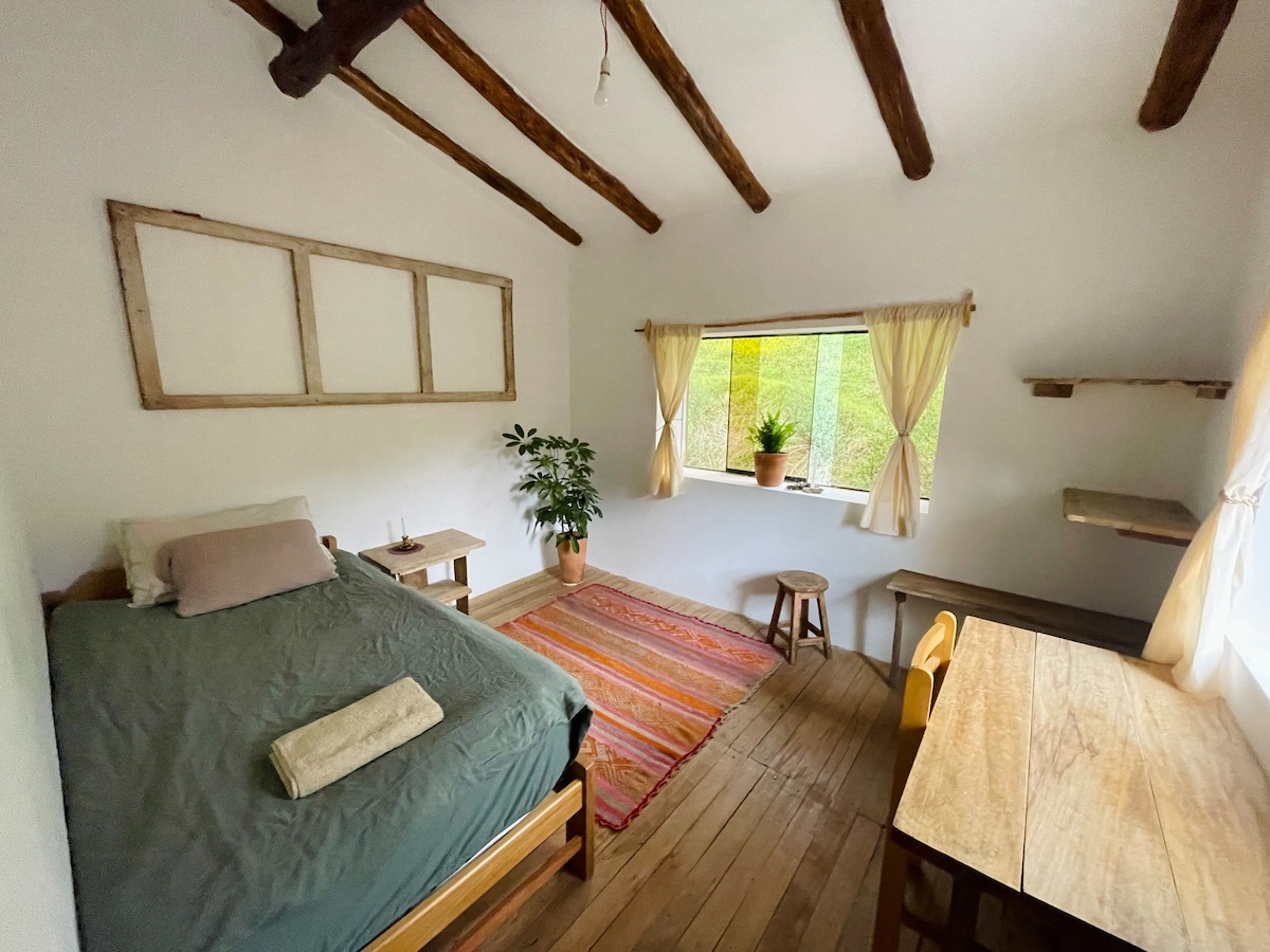 La casa está ubicada a 10 minutos del pueblo de Pisac, el lugar está rodeado de naturaleza y tranquilidad; La casa cuenta con todas las comodidades para que tu estancia sea agradable; con una hermosa vista de las montañas; casa construida con materiales eco amigables, en adobe, madera y piedra, además de acabados de alta calidad. El Bungalow está totalmente equipado, dormitorio, cocina, Sala, Comedor, televisión, agua caliente. Internet de alta velocidad. y un amplio patio con amahaca.