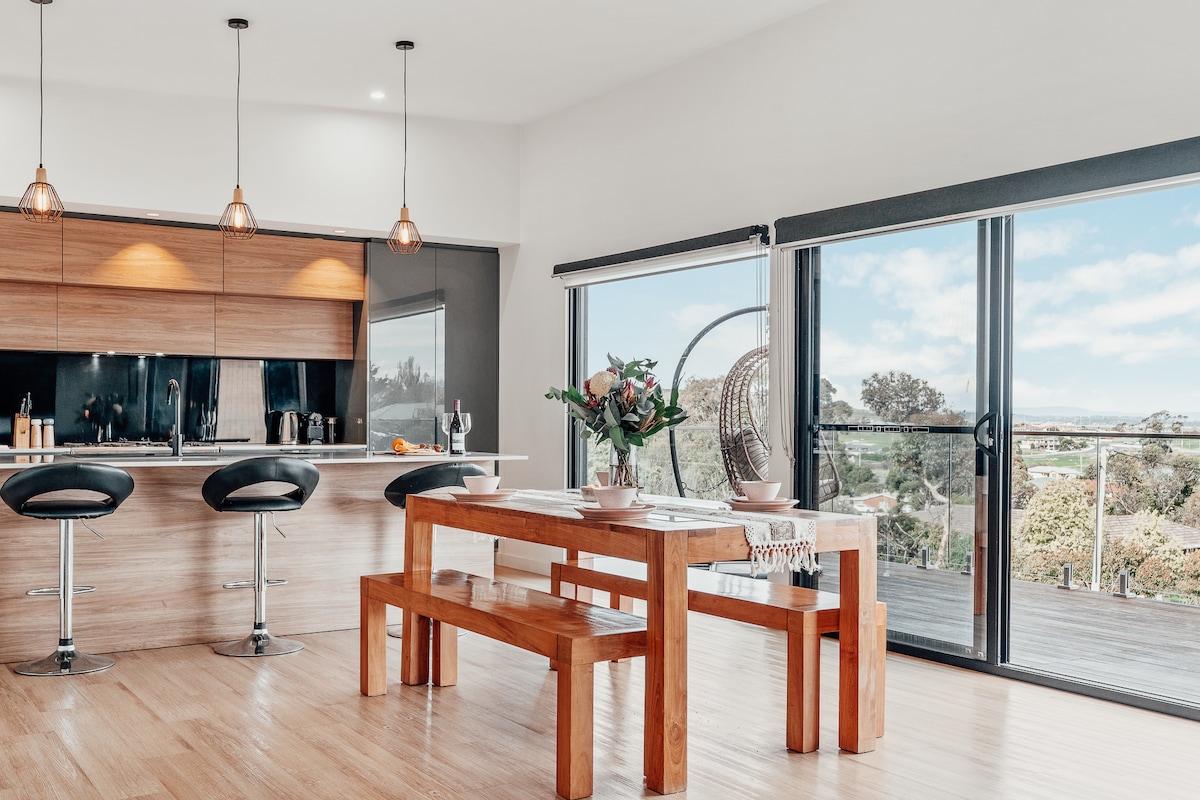 Queremos ofrecer a los visitantes de Hobart una experiencia de alojamiento única y lujosa, que conecta el diseño moderno con su entorno accidentado y arbustivo. Ubicados en West Hobart, estamos a 8 minutos en coche del paseo marítimo de Salamanca. Nuestra casa de 2 pisos está enclavada en una calle arbustiva privada, con increíbles vistas del río Derwent, South Hobart, Sandy Bay y más allá. El alojamiento es amplio y privado, pero está rodeado de vida silvestre local (inofensiva). Verás muchos ualabíes pastando en la propiedad.