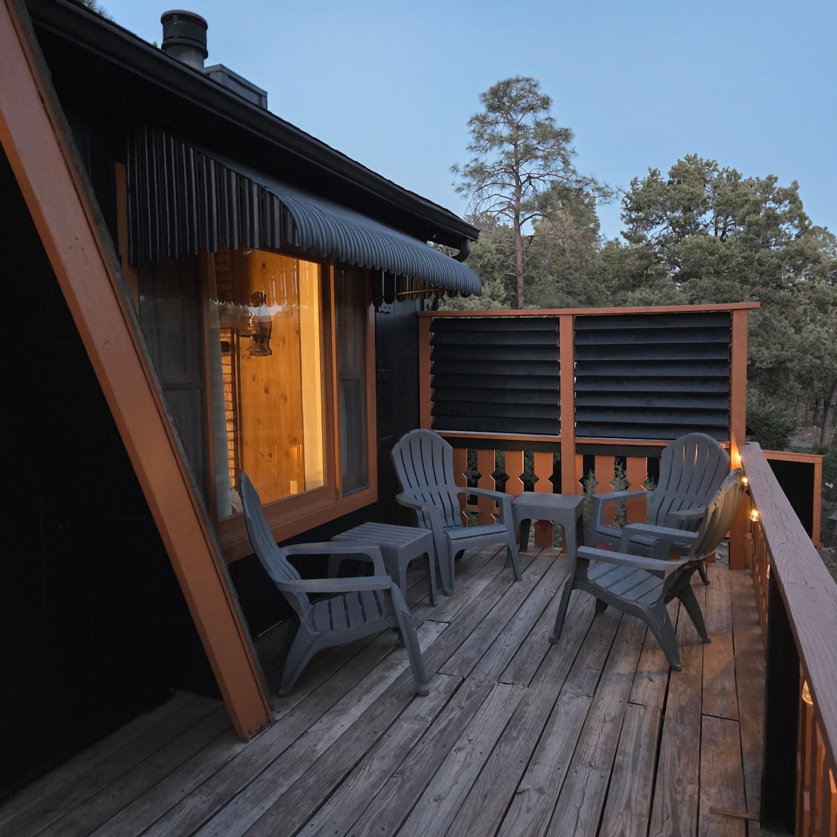 Rustic Cliffside combina un diseño moderno con detalles en blanco y negro en todas partes. La luminosa sala de estar está bañada de luz natural, y la cocina totalmente equipada y el baño tipo spa ofrecen la máxima comodidad. El dormitorio incluye una cama tamaño queen con amplio espacio de almacenamiento, mientras que el loft de arriba cuenta con otra cama queen y vistas impresionantes del cañón Palo Duro. En el exterior, disfruta de un patio privado con una mesa de bistró y parrilla. Ubicado a pocos minutos de la entrada del parque, es la escapada perfecta al cañón