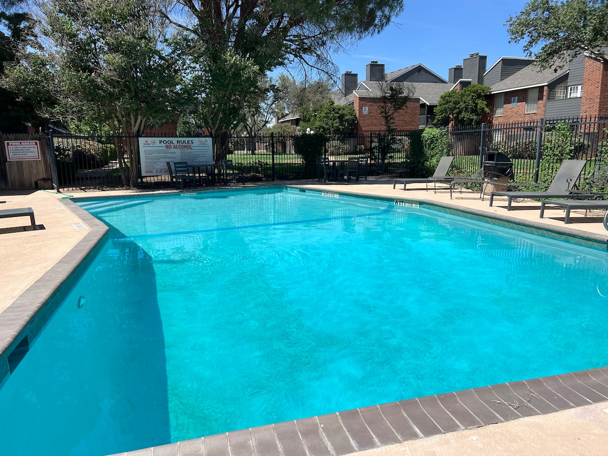 6 millas a Texas Tech: estudio con piscina compartida y parrilla