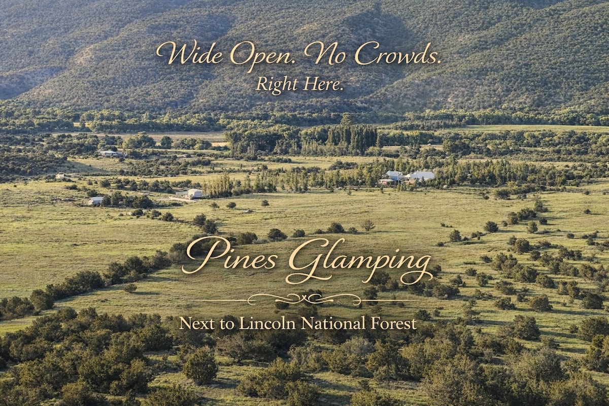 Escápate del ruido y desaparece por unos días. Ubicada en 15 hectáreas privadas en el límite del bosque, aquí la tranquilidad realmente significa algo. Sin multitudes, sin paredes compartidas: solo fogatas, estrellas y espacios abiertos. Lo suficientemente cerca de Ruidoso para cuando quieras… lo suficientemente lejos para cuando no quieras. Sal y te encontrarás rodeado de campos abiertos, aire del bosque y los inmensos cielos de Nuevo México. Pasa tus noches junto a la fogata y contempla las estrellas. Es sencillo, auténtico y exactamente lo que la mayoría de los lugares ya no pueden ofrecer.