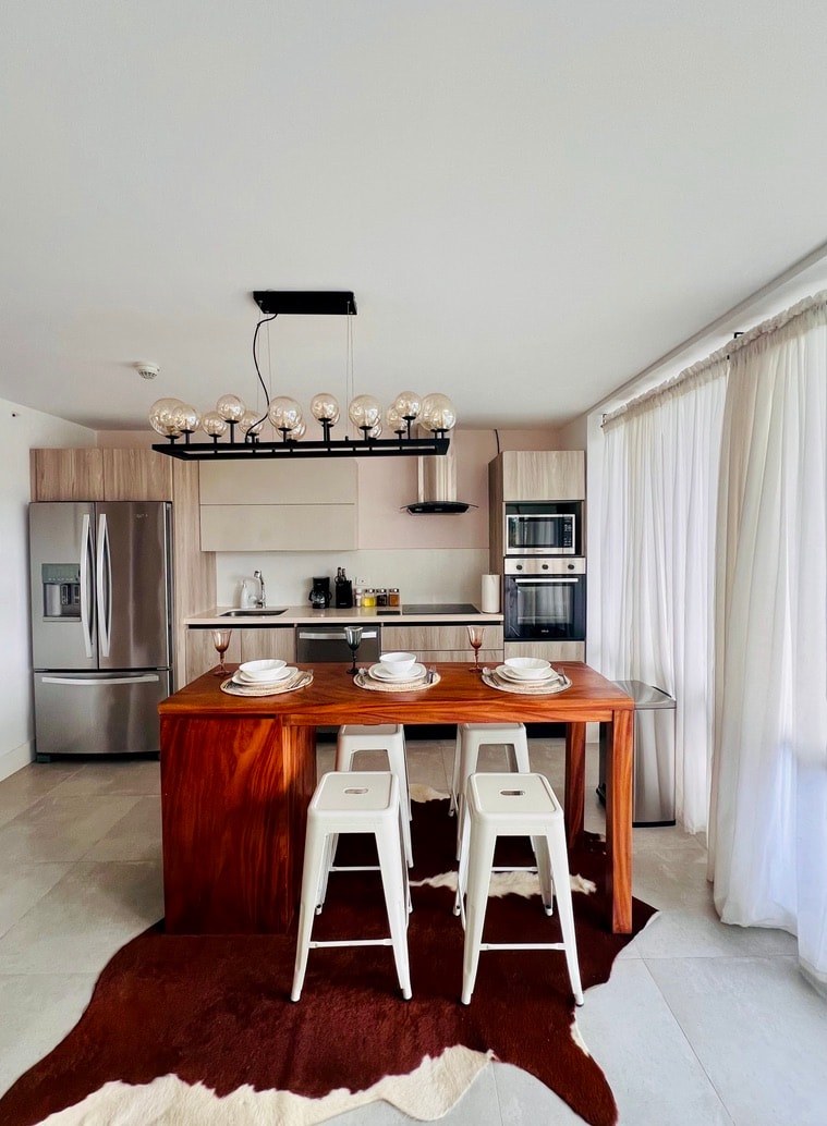 This stylish home is located at the heart of Playa Venao, surrounded by amazing restaurants, surf shops, and just a few steps away from the ocean. Staying at Blue Venao, an exclusive gated community, you'll have access to a magnificent social area with a pool, bar, and restaurant. The apartment is exquisitely decorated with a modern boho style, which makes it feel just like home. It has two bedrooms with bathrooms, spacious common areas, a kitchen, and an open-air balcony.