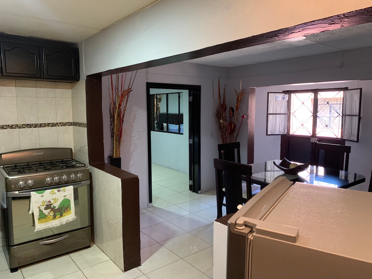 Casa Guadalupe es un departamento para 2 huéspedes, privado con cocina, baño, una recamara, comedor y escritorio de trabajo. está dentro de una propiedad con más departamentos pero el espacio es departamento es solo para ti. Ubicado a 15 minutos del centro a Pie y 5 en auto, además de estar cerca de el centro comercial Punto la gloria, la central camionera y el Núcleo de feria.