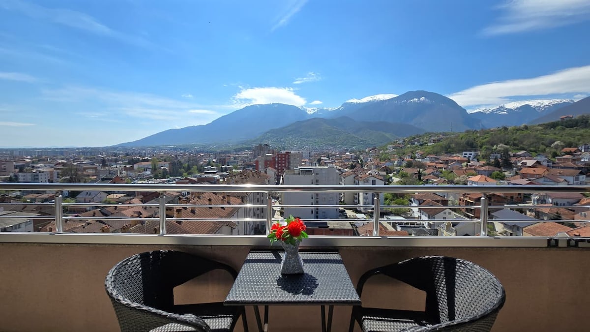 Nota CUANDO RESERVES CON NOSOTROS, ENVÍANOS UN MENSAJE CON INFORMACIÓN SOBRE TI Y TUS COMPAÑEROS DE VIAJE. Bienvenido a nuestro elegante apartamento con impresionantes vistas a la montaña y a la ciudad. El apartamento está en el corazón de Peja, a solo 500 metros del centro de la ciudad y a menos de 10 km del cañón de Rugova. Perfectamente ubicado para la exploración urbana y de montaña, nuestro apartamento promete una estancia inolvidable entre las luces de la ciudad y las comodidades modernas. ¡Experimenta lo que Peja tiene que ofrecer y compártelo con el mundo!