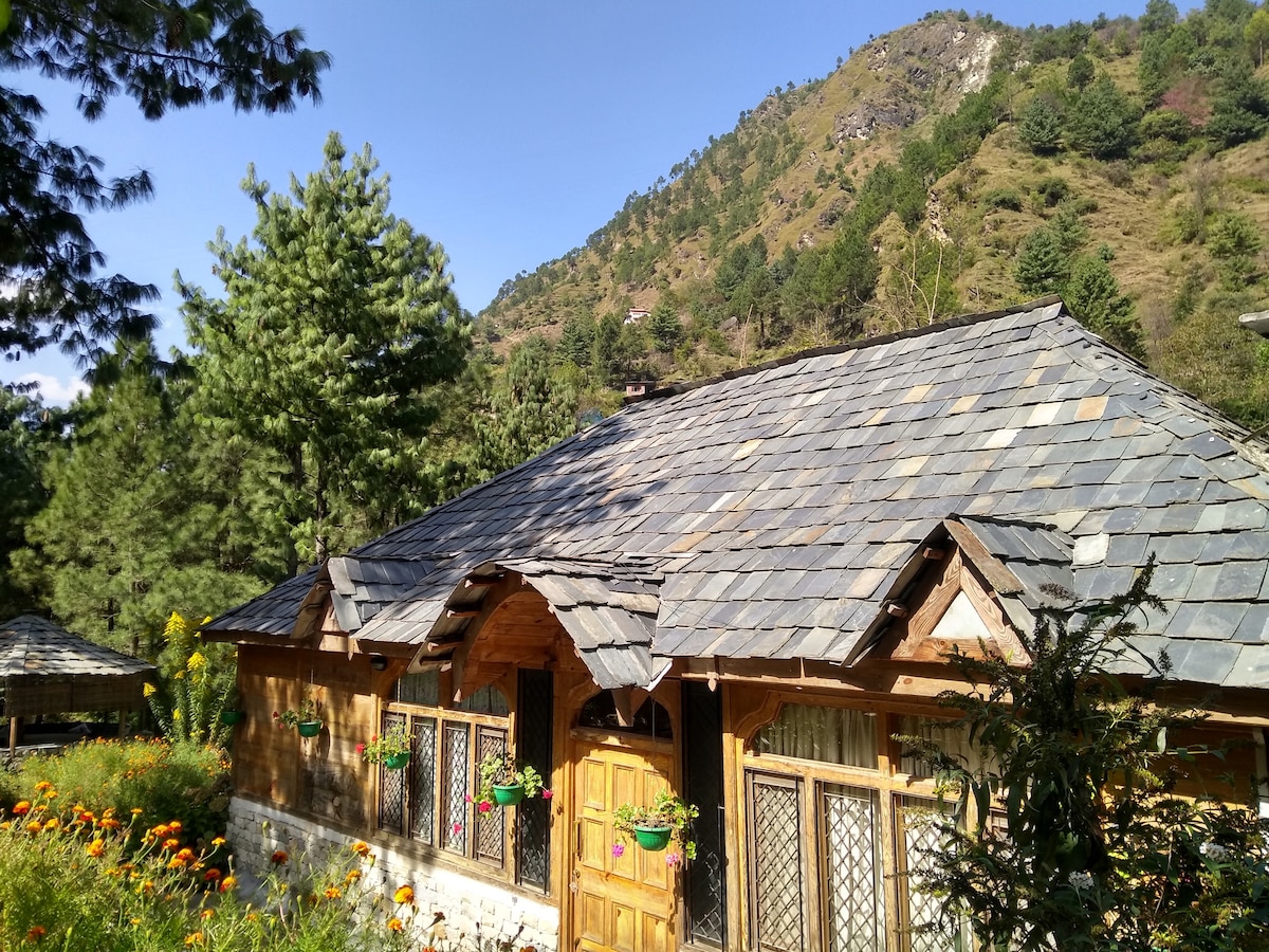 Esta acogedora y económica cabaña de madera en el hermoso valle de Deohari/Sainj ofrece una experiencia cercana a la naturaleza. Puedes disfrutar de la impresionante vista de los glaciares nevados desde el lujo de tu cama suave y cómoda o explorar las increíbles rutas de senderismo a montañas, cascadas y praderas de los alrededores. ¡Ven y disfruta de la magia de la naturaleza con todas las comodidades básicas para vivir una experiencia inolvidable que atesorar toda la vida!