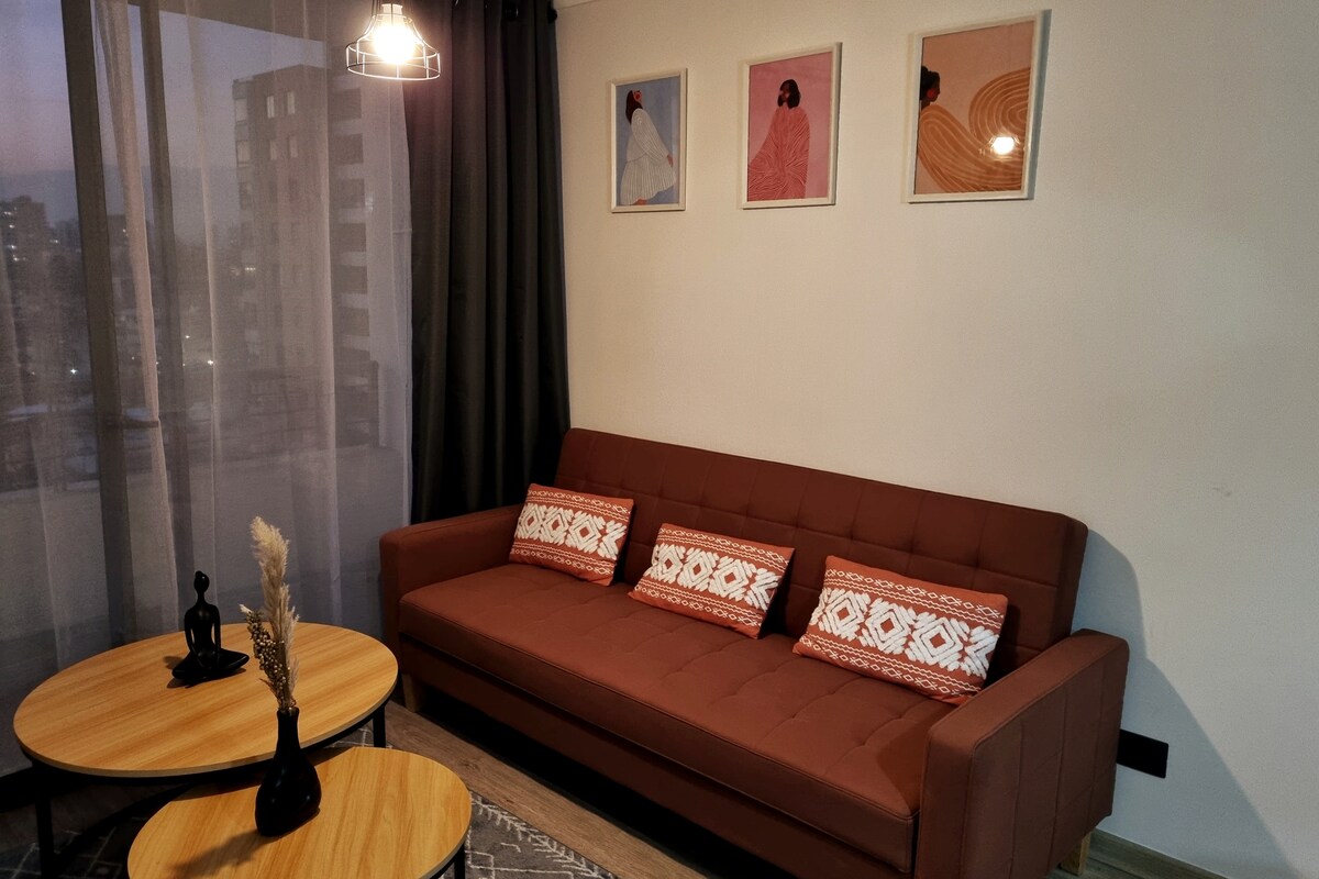 Disfruta de un espacio moderno y lleno de detalles en La Florida. Este departamento 1D/1B está frente al Mall Plaza Vespucio y pasos del metro, ideal para descansar, trabajar o escaparte un fin de semana. Equipado con todo lo que necesitas: cocina completa, WiFi rápido, terraza, TV y estacionamiento privado. Perfecto para parejas o viajeros exigentes que buscan comodidad, estilo y buena ubicación.