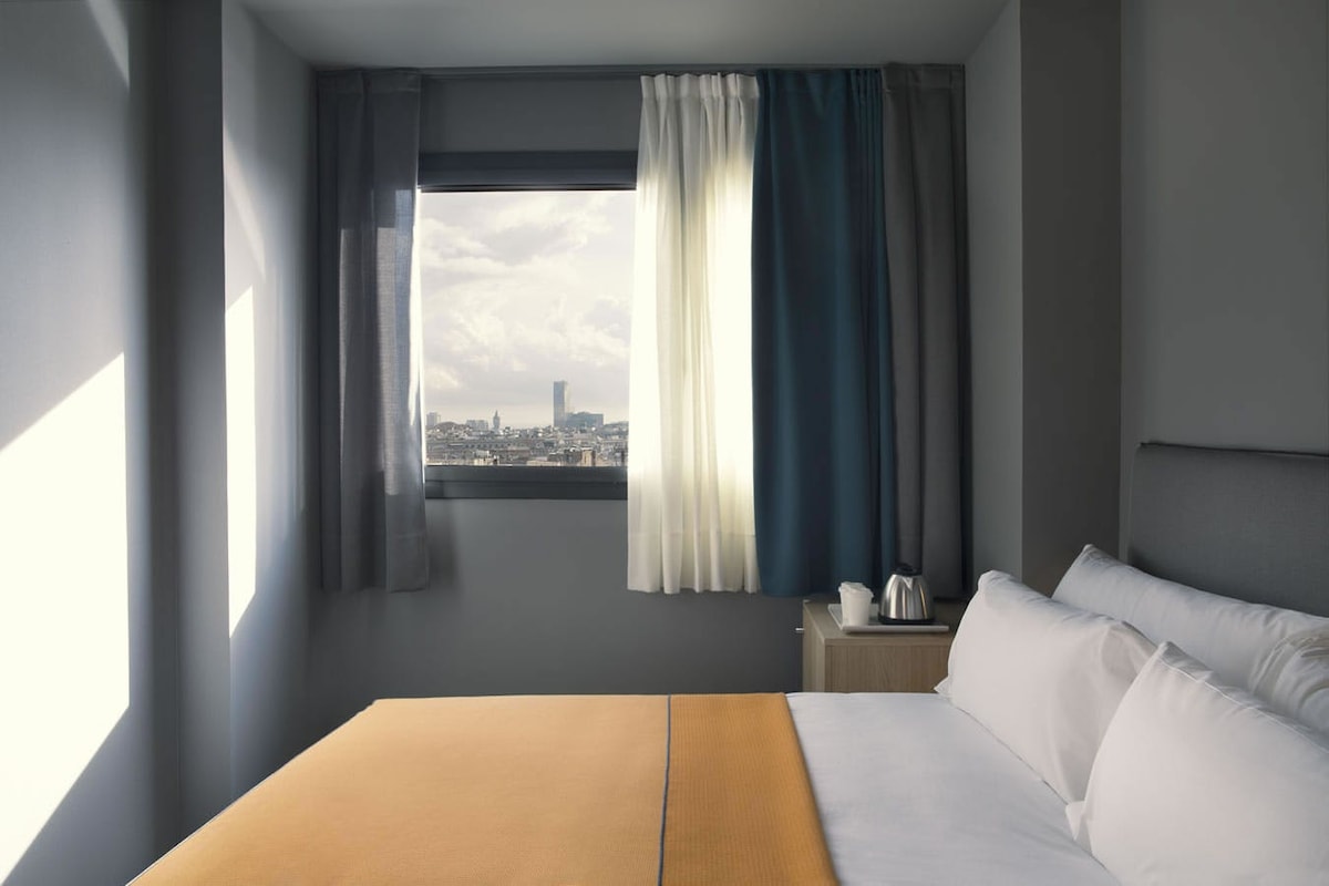ONIX RAMBLA ¿Quieres despertarte con la Rambla Catalunya a tus pies? Disfruta de la vista de uno de los bulevares más majestuosos de Barcelona. Nuestra habitación Twin Vista Rambla combina amplitud, luminosidad y un diseño cuidado, creado para ofrecerte un ambiente de tranquilidad y comodidad durante tu estancia. Tiene: Baño completo con tina WIFI GRATUITO Aire acondicionado con termostato individual TV LCD de pantalla plana Minibar Caja fuerte Secadora Twin: 2 camas de 105 x 200 cm. Superficie: entre 24m2 y 26m2