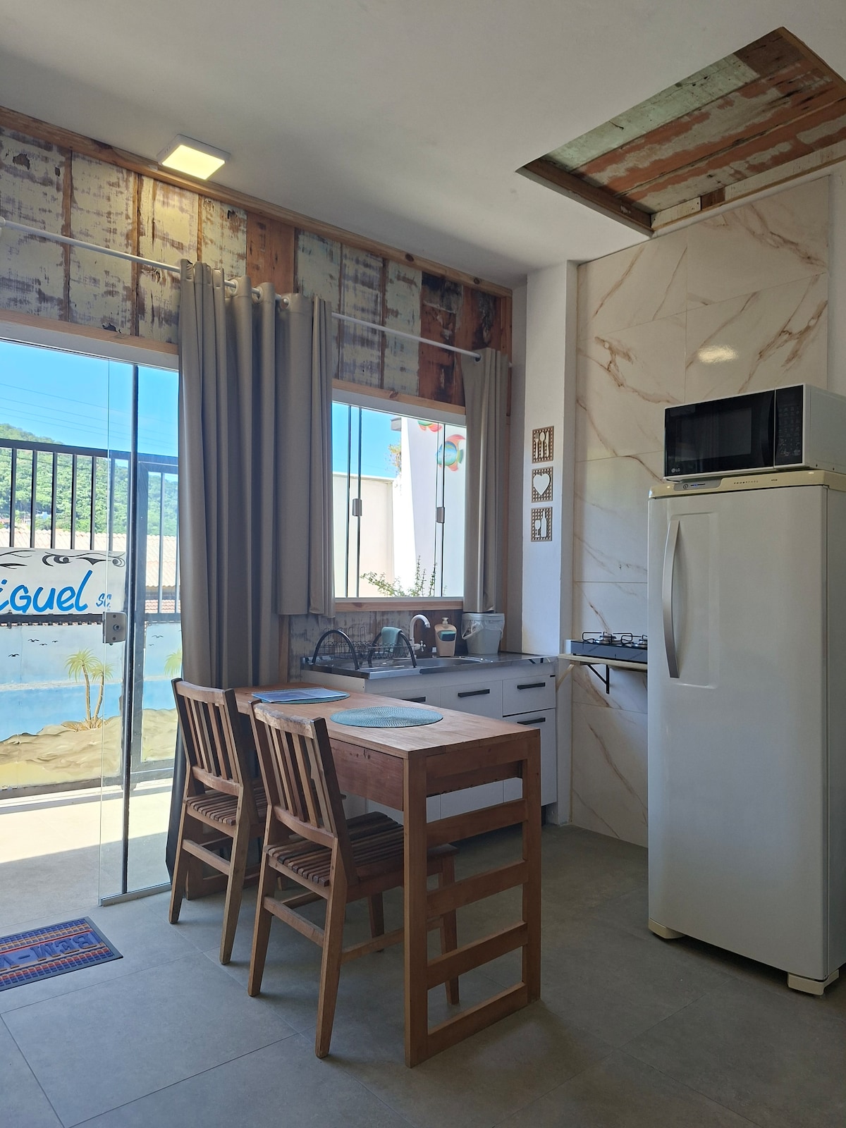 Relájate en este lugar único y tranquilo. Si quedarte dormido con el sonido del mar y despertarte con el canto de los pájaros es un problema, este chalet no es para ti. A 3 minutos del parque Beto Carrero y frente al mar en la playa de Poá en Penha SC. Cama tamaño king, ducha con refuerzo de presión, cocina completa con estufa de inducción, microondas, minibar, freidora de aire, máquina de palomitas de maíz, cafetera espresso y pequeña barbacoa rústica con mostrador en la parte trasera del chalet. Todo en un área privada de 1200 metros cuadrados (: