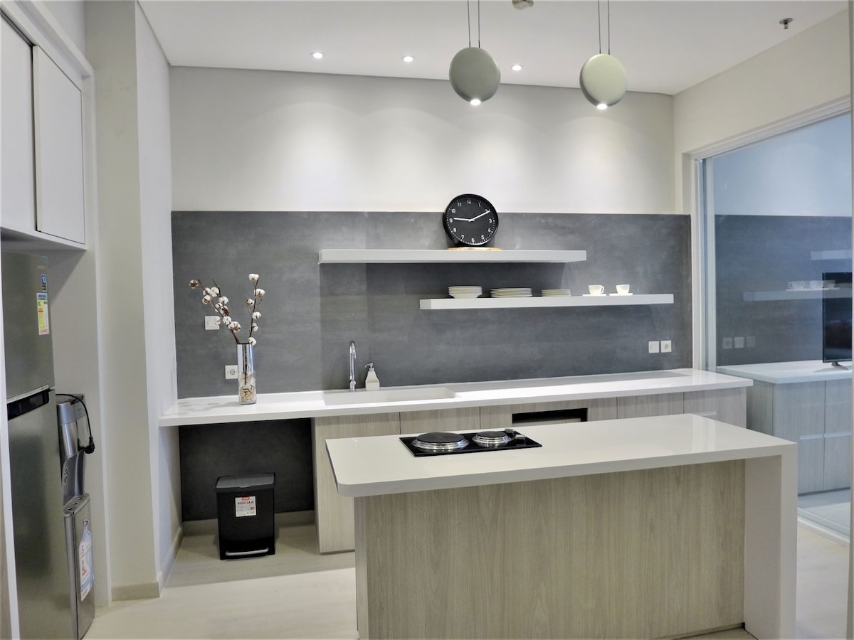 Hola, te invitamos a alojarte en nuestro nuevo apartamento, situado en el corazón de Yakarta. A solo unos minutos del distrito central de negocios de Sudirman y de prestigiosos centros comerciales, alojarse en nuestro apartamento te dará la comodidad de trabajar y disfrutar del ocio en Yakarta. A menos de 50 m de la estación de MRT más cercana. Nuestra unidad es espaciosa. El apartamento de un dormitorio puede alojar hasta 4 adultos, decorado con un diseño limpio, moderno y monocromático y comodidades completas y cocina totalmente equipada.