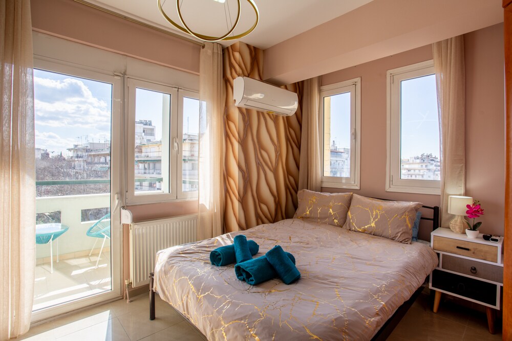 Apartamento central elegante en Salónica con balcón/lavadora