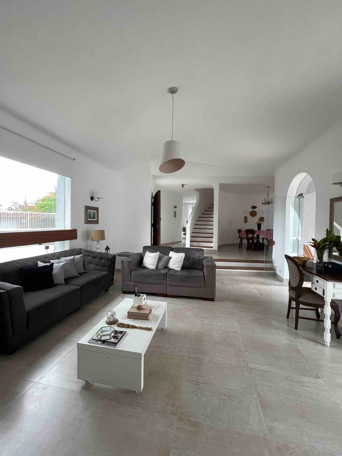 ¡Una de las casas más completas de Guarujá! Piscina con hidromasaje, mesa de billar, TV en el área exterior con barra de sonido, patio grande, barbacoa, cervecería, 5 dormitorios con aire acondicionado (3 suites y 1 de ellas con hidromasaje), espacios de estacionamiento para 5 autos, cocina totalmente equipada y amueblada, sala de estar con TV, wifi, ropa de cama. Hasta 16 personas, a 200 metros de la playa a 5 minutos a pie, 3 de los dormitorios con vistas a la piscina, 1 dormitorio en la planta baja. Altura de la puerta: 1,90 m (6' 3"). Ponte en contacto con nosotros para obtener más información 🌊 ¡El check-in y el check-out se acordarán!