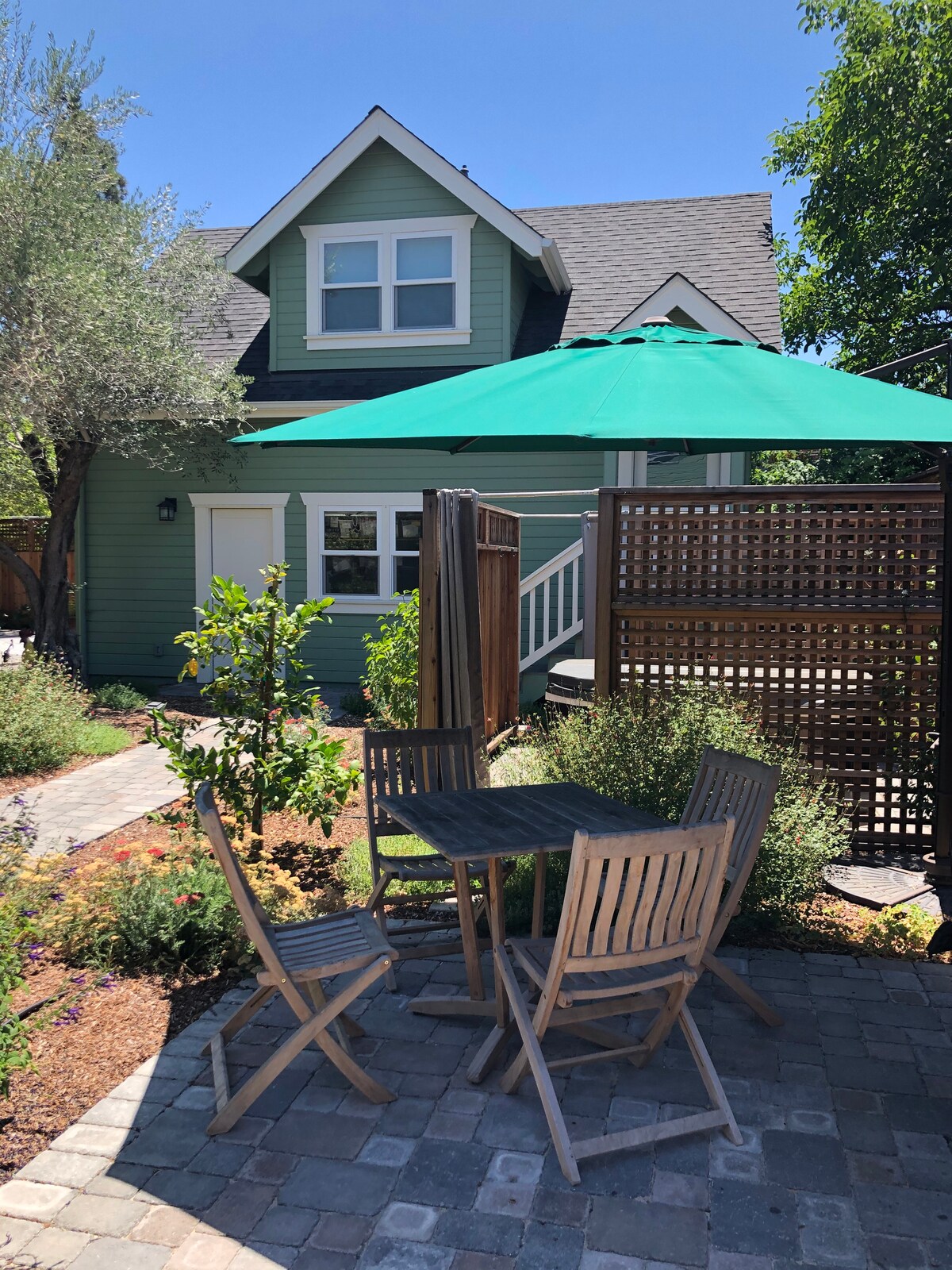Construido en 1870, nuestro Fair Street Retreat se encuentra en una de las casas más antiguas de Petaluma. El estudio con baño está conectado a la casa principal, pero tiene su propio dormitorio privado, baño, cocina pequeña, entrada independiente y terraza exterior. Estamos a 3 manzanas del histórico distrito del centro, a poca distancia a pie de los restaurantes y tiendas frente al río. Si prefieres quedarte en casa, prepara un poco de café en la cocina pequeña y siéntate en la terraza bajo los sauces. #PLVR-19-0017