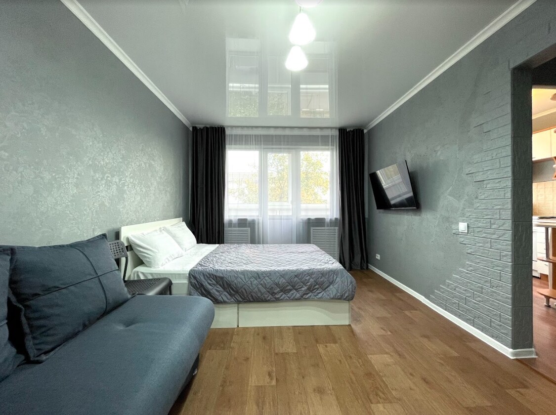 Un apartamento de lujo de 1 dormitorio en el centro de la ciudad. La ubicación es muy céntrica. Alojarse en el apartamento te dará emociones vívidas y querrás volver aquí otra vez. El apartamento está equipado con todos los electrodomésticos necesarios, una cama doble con colchón ortopédico (colchón con relleno de coco), un proyector, WIFI ilimitado, así como un sofá para una estancia cómoda.