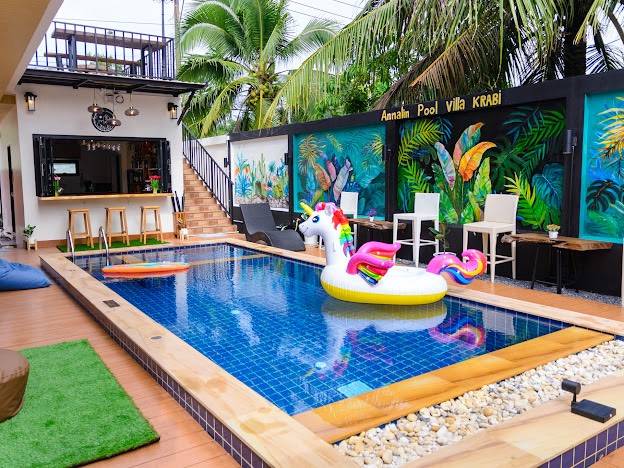Trae a toda la familia a este gran lugar con mucha diversión. Tranquilo, cerca de la naturaleza, la piscina y las vistas a las montañas. Hay balcones en todas las aguas. Puedes jugar en el canal natural durante la marea alta. La casa está cerca de la naturaleza, vista a la piscina y a la montaña. Con un balcón que sobresale en el agua. Puedes nadar en canales naturales a solo 3 minutos de la playa de Ao Nang.