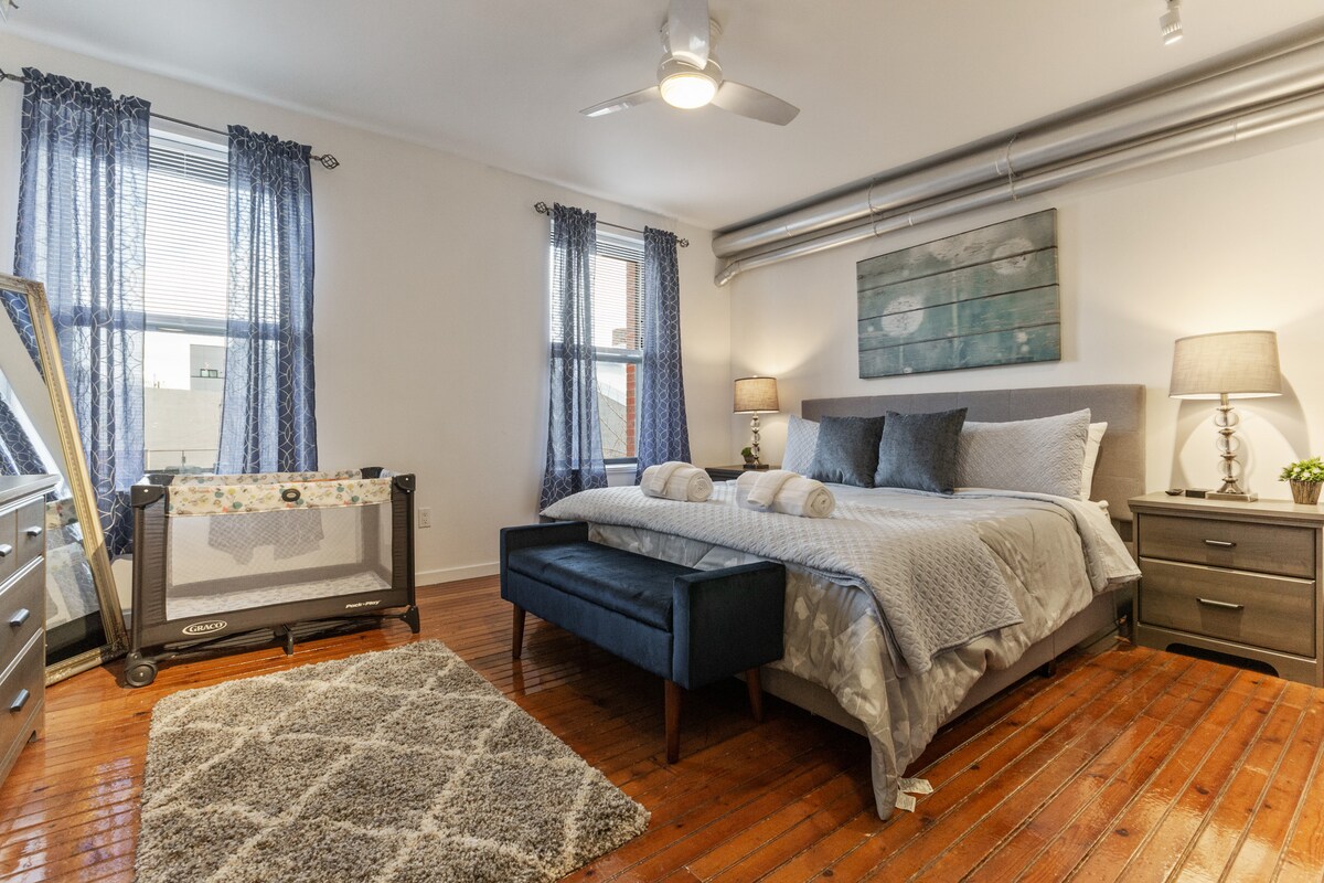 Descubre un refugio único en un almacén modernizado de Filadelfia adornado con vibrantes murales de graffiti. El espacio de ensueño de este artista presenta una decoración colorida, puertas de madera antiguas y un encanto industrial, creando un ambiente inspirador para la creatividad. El apartamento de 1 dormitorio ofrece una ducha espaciosa, una cocina de chef y muebles acogedores para una estancia creativa y cómoda. Con vistas a la animada 5th Street, está rodeado de bares, restaurantes y cervecerías, con mucho que explorar cerca.