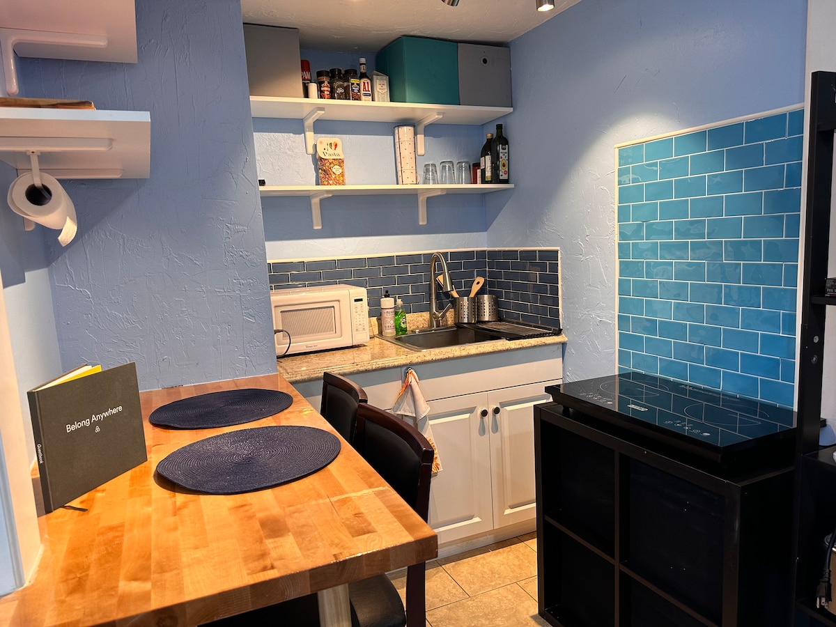 ¡Bienvenido a tu retiro privado en Sarasota! Este acogedor y bien equipado estudio ofrece todo lo que necesitas para una estancia cómoda: baño espacioso, cocina americana, lavadora, WiFi, TV, un cómodo sillón reclinable, escritorio y aire acondicionado de pared. Sal a un patio trasero cercado con una parrilla para barbacoa, perfecta para relajarte. Disfruta de una entrada privada y estacionamiento en la entrada. A solo 15 minutos de la playa de Siesta Key y a 10 minutos del centro de la ciudad, estás cerca de tiendas, restaurantes y el Legacy Trail. ¡Relájate y disfruta!
