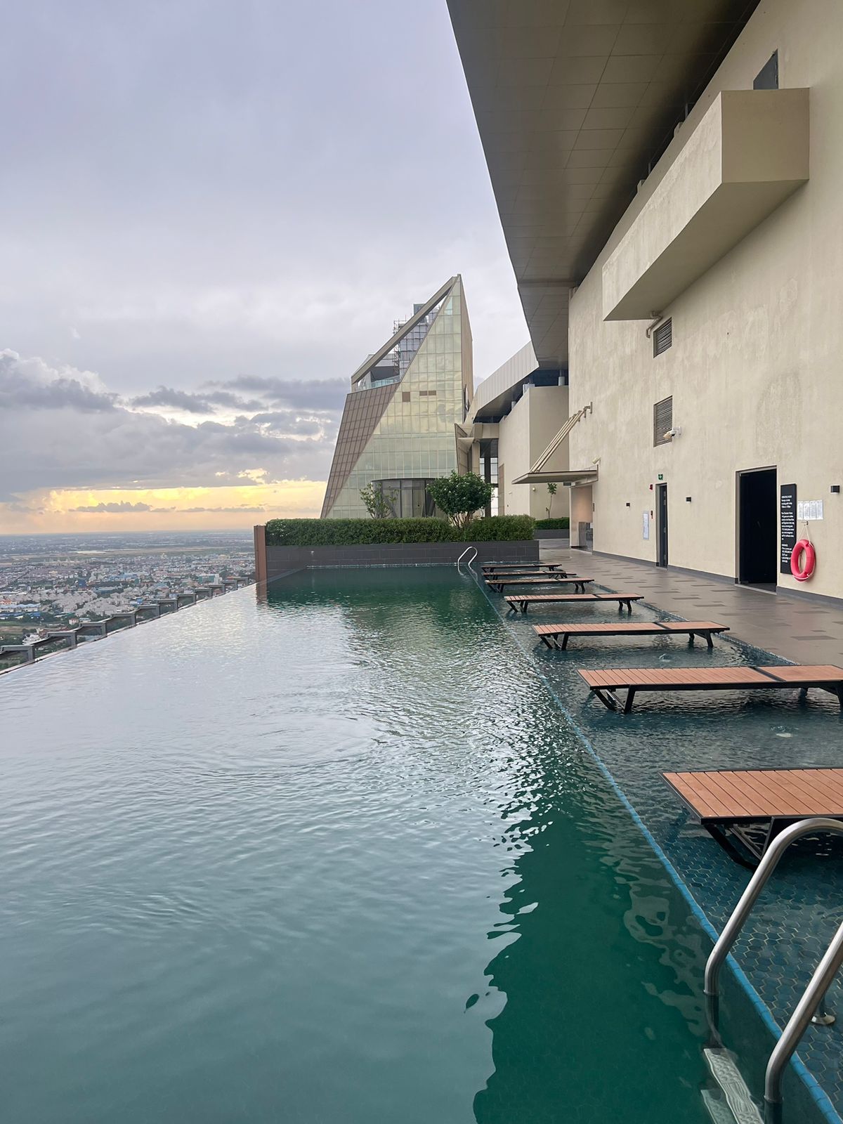 Departamento único en el piso 43 de un edificio emblemático en Phnom Penh. Ubicado en la moderna zona de Phnom Penh, tendrás una vista increíble del río. 2 dormitorios y 2 baños disponibles que pueden caber perfectamente para una familia o para un viaje de negocios. Acceso a la gigantesca piscina y gimnasio. También hay una cama para bebés.