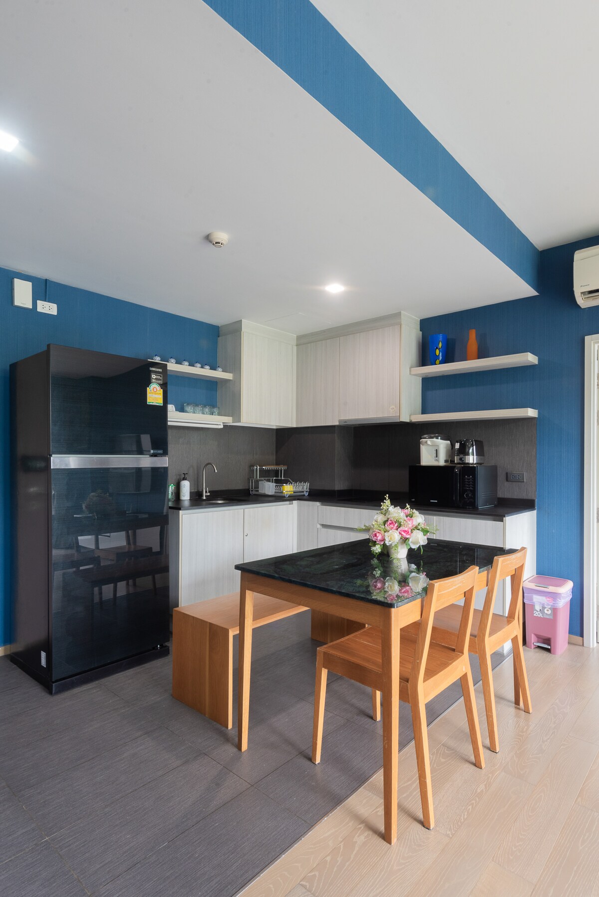 Una casa de fin de semana de estilo nórdico de 3 dormitorios, con amplia sala de estar, cocina y zona exterior. Apto para 6-12 personas. Un escape de la ciudad: - A 140 km de Bangkok. - A 30 km de Khao yai. - A 50 km de Saraburi. - Ubicado en el distrito de Muaklek, donde puedes explorar las áreas locales.