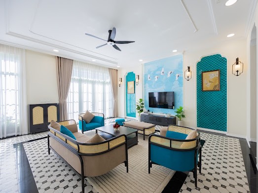 Hanie Villa es una villa personal de 3 dormitorios con piscina privada ubicada en una esquina de Sailing Club Signature Resort Phu Quoc. - Recogida gratuita en el aeropuerto/terminal de ferris a la casa cuando te hospedes a partir de 3 noches o más. - Utiliza toda la villa, adecuada para viajes en pareja, familiares o grupos de amigos. - Hay una sala de estar, comedor y cocina moderna, jardín privado junto a la piscina. - Puedes usar la playa privada, el restaurante, el gimnasio y el spa de Sailing Club Resort.