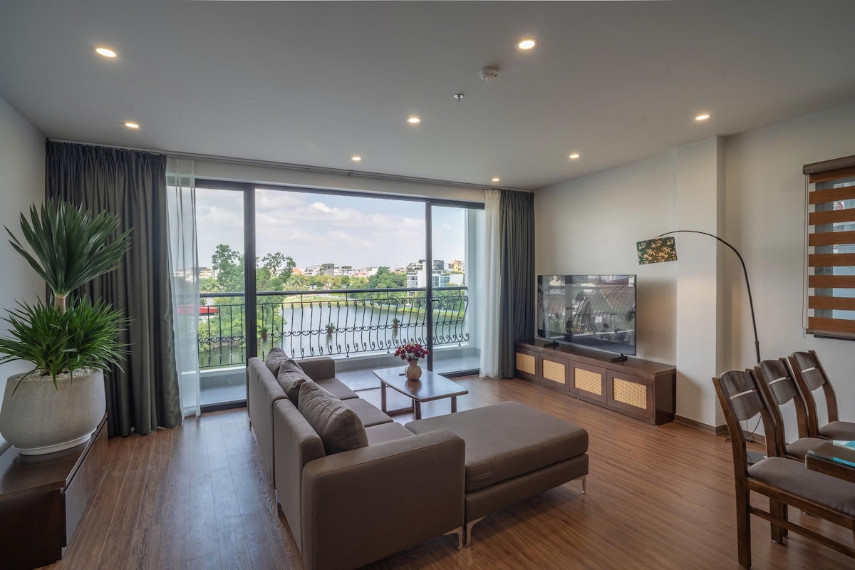 Chào Mừng Quý Khách Tới Thăm Căn Hộ Mới! Không gian sống lý tưởng rất bình yên, ban công dài rộng phơi nắng & hướng nhìn tận hưởng View Hồ. Diện tích căn 2 phòng ngủ #115m2 riêng tư, phòng khách siêu rộng lớn nhiều ánh sáng tự nhiên kết nối khu bếp đầy đủ dụng cụ bếp. Tiện ích: Smart tivi 65INH, Sofa êm, Máy giặt/sấy, Điều hòa âm trần 2 chiều công suất lớn, Phòng ngủ lớn/ nhỏ có 02 chiếc bàn làm việc...... Vị trí kết nối nhanh với khu Phố Cổ, Lăng Chủ Tịch và nhiều điểm thăm quan.