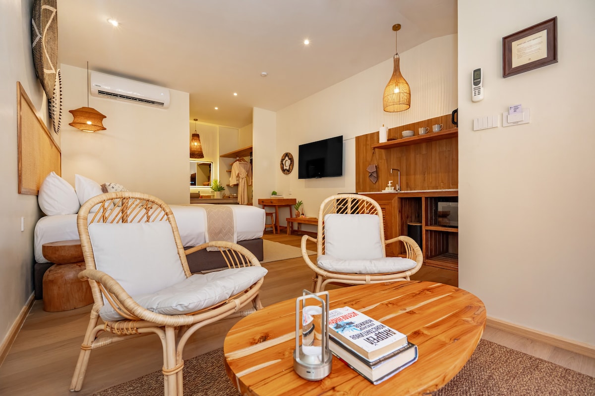 Experimenta la comodidad en la recién renovada habitación Deluxe del Orchidacea Resort, que ofrece 33 metros cuadrados de alojamiento espacioso y elegantemente diseñado. Disfruta de unas vistas impresionantes de la playa de Kata desde el balcón privado de la habitación, un lugar tranquilo para relajarte. La habitación está equipada con las mejores comodidades, como ducha, secador de pelo, minibar, cafetera y tetera, TV por cable, teléfono IDD, caja fuerte y wifi gratuito en la habitación, lo que garantiza una estancia cómoda y conveniente para viajeros de negocios o de placer.