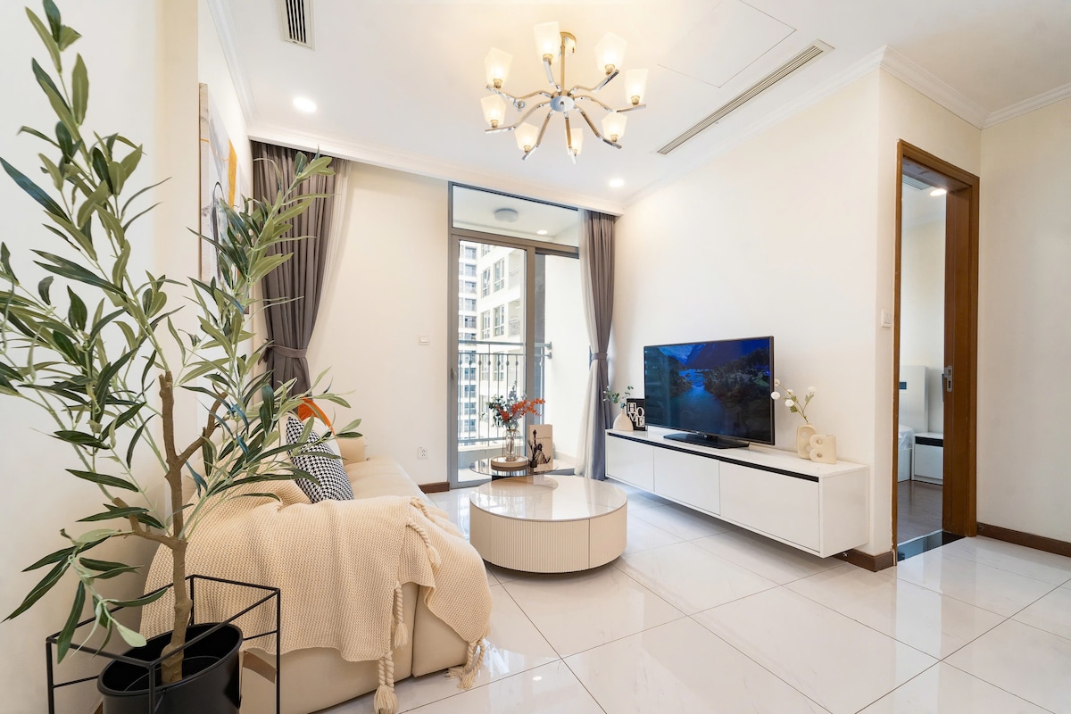 Apartamento de 2 habitaciones en el edificio Landmark 5. Ubicado en el área urbana de Vinhomes Central Park, a solo 2 minutos del área de Landmark 81.- Este es un complejo de restaurantes, cafeterías, centros comerciales... y solo tarda entre 5 y 10 minutos en llegar al centro de la ciudad. - Lujosa sala de estar, totalmente equipada. - Adecuado tanto para estancias cortas como largas.