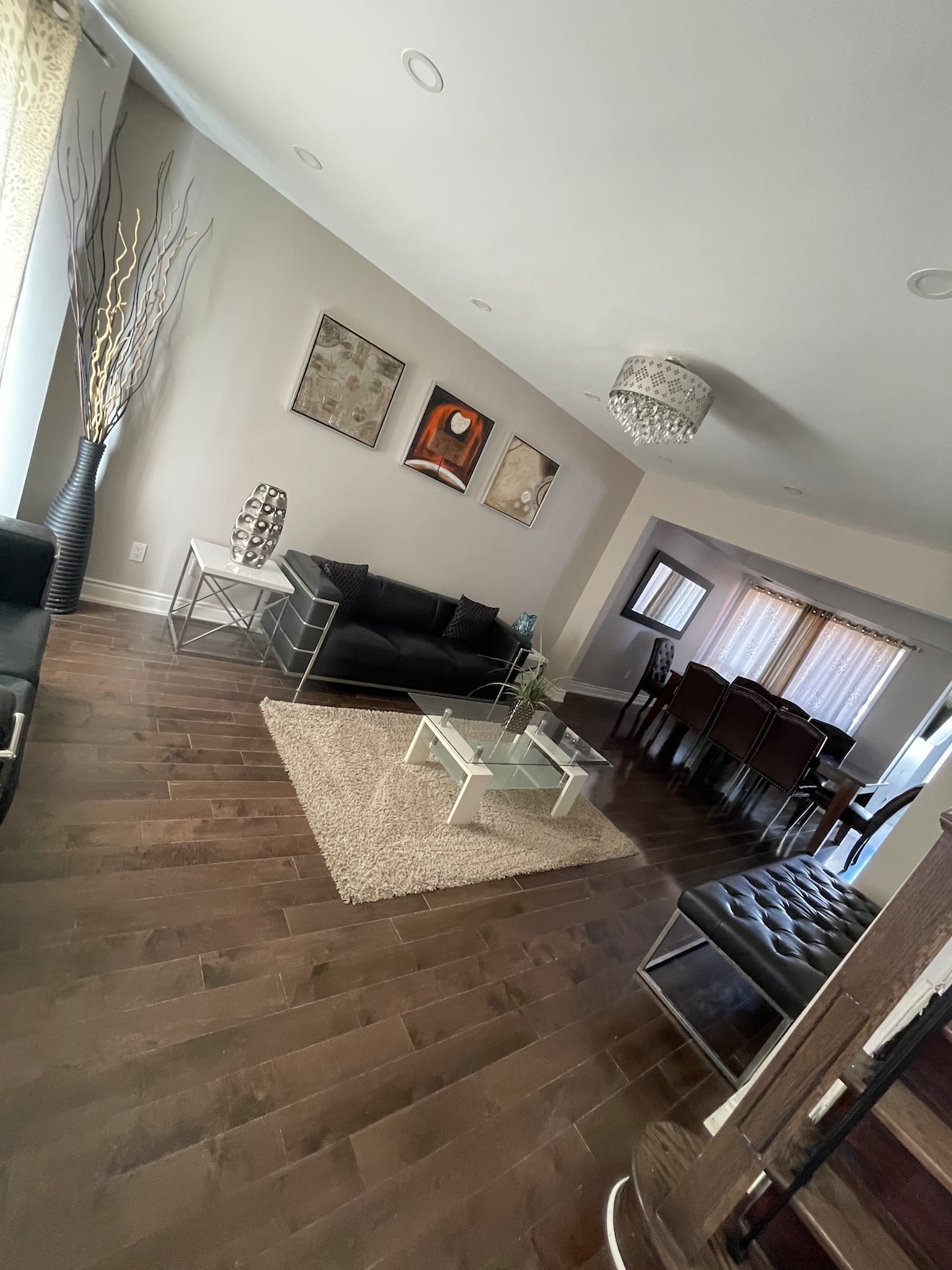 ACOGEDORA y ACOGEDORA, esta moderna suite se encuentra en un barrio tranquilo y familiar de Ajax. A solo 10 minutos de Thermea Spa y Ajax GO Station, y a poca distancia a pie de parques, tiendas y supermercados. Recién construido con acabados de lujo, el espacio de 1000 pies cuadrados incluye calefacción en el piso, una chimenea eléctrica, un amplio sofá y TV inteligente con Netflix/Prime. El centro de Toronto está a 35–45 minutos en auto y el aeropuerto de Pearson o Mississauga a unos 55 minutos.
