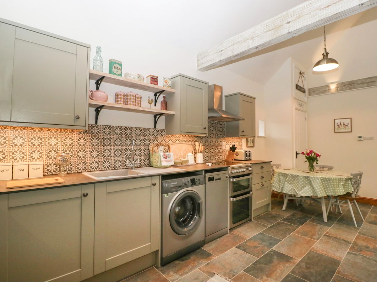 Hermosa casa de invitados reformada con cariño en el corazón del pueblo de Pilton, situada en los exuberantes terrenos privados de nuestra casa familiar. Dos dormitorios dobles, uno con bañera independiente con tapa enrollable (opción de añadir una cama supletoria/cuna para un niño); cuarto de ducha; gran cocina de planta abierta, comedor y sala de estar, con dos juegos de puertas dobles que conducen a una terraza comedor privada al aire libre (con barbacoa y chimenea); vista y uso compartido de nuestro prado con columpio de cuerda, columpio para bebés y trampolín para niños.