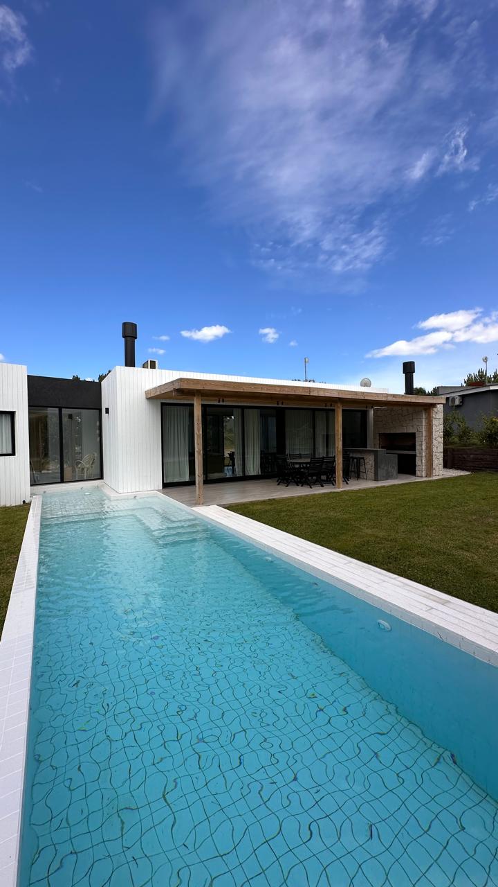 Ubicada en el corazón del bosque, esta moderna y elegante casa de una planta ofrece un refugio único, rodeado de árboles y la tranquilidad de la naturaleza. Con amplios espacios diseñados para disfrutar del entorno, podrás relajarte mientras contemplas increíbles atardeceres y escuchas el sonido de la fauna local. Pensada para disfrutar al máximo del aire libre, con una extensa galería semicubierta, piscina, parrilla y fogonero, donde podrás compartir momentos inolvidables con familia o amigos.