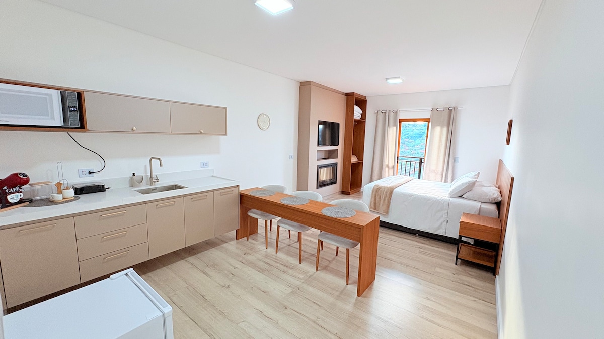 A solo 200 metros del restaurante Baden Baden. Hermosa y acogedora suite en el centro de Vila Capivari. Amplia suite para parejas, pequeña cocina americana sin fogones. Hermosa vista a Vila Capivari. ¡Su ubicación no requiere el uso de vehículos! (obs) para esta suite no hay garaje, pero hay un lugar cerca de la vivienda donde se puede estacionar sin problemas.